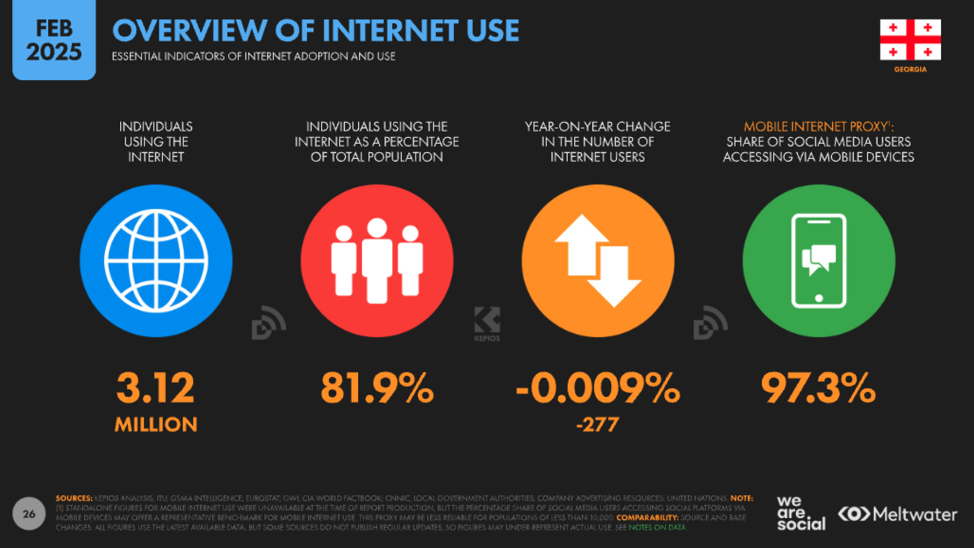 Начнем с социально-демографических данных — они помогут лучше понять рыночный ландшафт Грузии и особенности её аудитории.