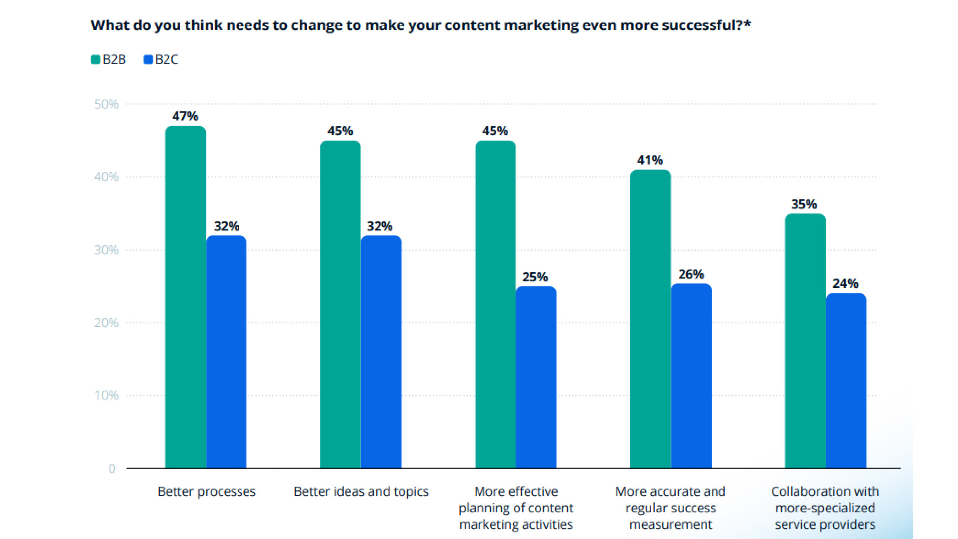 Почти половина B2B-маркетологов в США указывают доверие как одну из главных целей контент-стратегии.