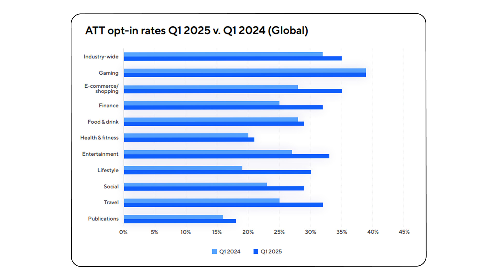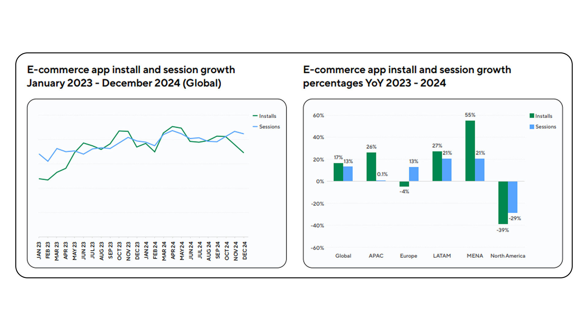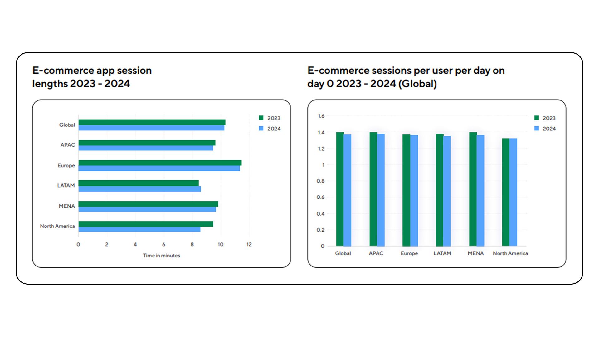 В игровой индустрии для вовлечения могут использоваться регулярные обновления контента, внутриигровые события или челленджи. Согласно отчёту NielsenIQ, нормативы конфиденциальности все больше воспринимают не как барьер, а как ключ к раскрытию потенциала данных и укреплению доверия пользователей. Это важная трансформация для рынка мобильных приложений. Законы о защите информации меняют рынок приложений по всему миру. Поэтому внедрение ИИ-технологий необходимо для получения «чистых» и соответствующих требованиям данных. Среди пользователей iOS показатель согласия на отслеживание (App Tracking Transparency) растет — с 32% до 35% в среднем по миру к началу 2025 года. Например, рост лояльности к ATT показали приложения в сфере развлечений — с 27% до 33%, а также приложения в категории путешествий — с 25% до 32%. По мере того как пользователи понимают суть запроса и уверены в безопасности, разработчикам стоит совершенствовать запросы на отслеживание. Для этого важно конкретно объяснять, какую пользу приносит такое разрешение. В e-commerce наблюдается рост инвестиций в маркетинговые стратегии с мобильными форматами — особенно c in-app рекламой. Пользователи все чаще предпочитают приложения, поэтому ритейлеры используют этот канал для расширения охвата и поддержания коммуникации с потребителями в течение дня. Раньше основным каналом для брендов с моделью direct-to-consumer считались соцсети. Сегодня стало сложнее выделяться на фоне конкурентов, что заставляет маркетологов искать новые каналы роста. И они нашли их в рамках рынка мобильных приложений. In-app продвижение — относительно новый инструмент для этого сегмента. Но по мнению APPLOVIN, ритейлеры уже оценили её потенциал. Мобильная реклама позволяет запускать масштабируемые кампании с измеримыми результатами. Этому успеху способствует ИИ, который повышает эффективность за счёт оптимизации рекламных затрат, таргетинга и настройки целей на основе данных о конверсиях. Ультра-казуальные игры открывают новые возможности для рекламных кампаний. Простая механика и универсальность помогают получить миллионы установок и быстрое вовлечение пользователей. Благодаря упрощённому производству такие игры можно выпускать часто, а монетизация происходит за счёт большого объёма in-app рекламы. Мобильная коммерция уже сейчас составляет 73% от мировых продаж в сфере e-commerce. К 2025 году доходы от mobile commerce достигнут $2,5 трлн — рост на 21,3% по сравнению с предыдущим годом. Установки e-commerce приложений выросли на 17% в 2024 году по сравнению с предыдущим годом. Особенно выделился регион Ближнего Востока и Северной Африки, где установки увеличились на 55%. В Северной Америке зафиксировано наибольшее снижение. Средняя длительность сессии в e-commerce приложениях сократилась с 10,3 минуты в 2023 году до 10,23 минуты в 2024. Европа осталась лидером по этому показателю — 11,33 минуты. Снижение длины сессий в сегменте e-commerce и шопинга часто интерпретируется как положительный сигнал. Это может означать, что пользователи быстрее находят нужные товары, собирают корзину и оформляют заказ. В 2024 году e-commerce приложения стали сотрудничать с большим числом рекламных сетей. Наибольший рост зафиксирован в сегменте приложений для поиска выгодных предложений. Лидерами по числу партнерств остаются маркетплейсы и сервисы объявлений. Основные прогнозы: За последний год на моби