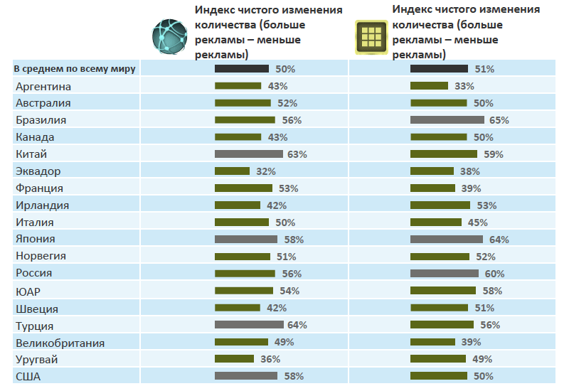 Индекс чистого изменения количества (больше рекламы – меньше рекламы)