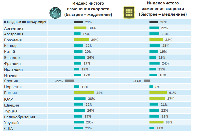 Индекс чистого изменения скорости (быстрее – медленнее)