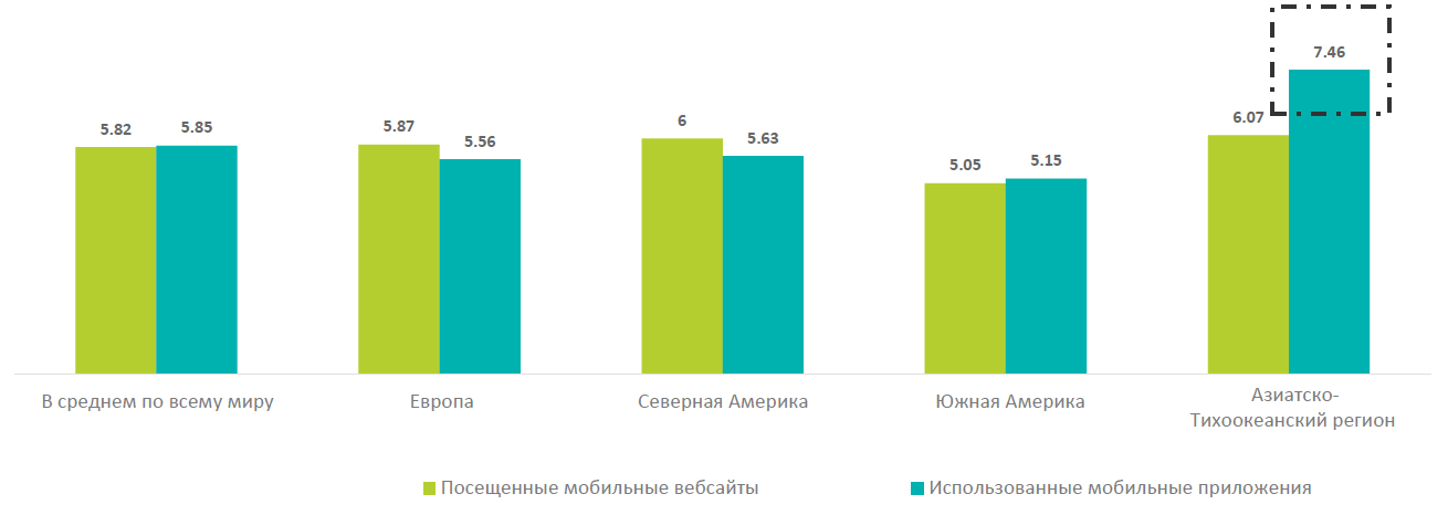 Среднее количество посещенных веб-сайтов/использованных приложений (в день)