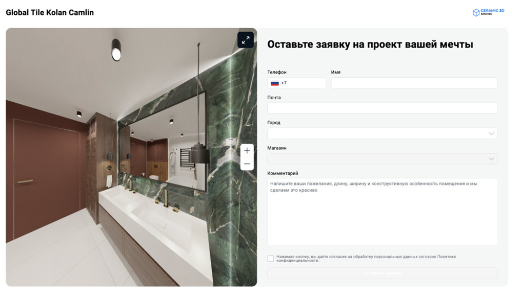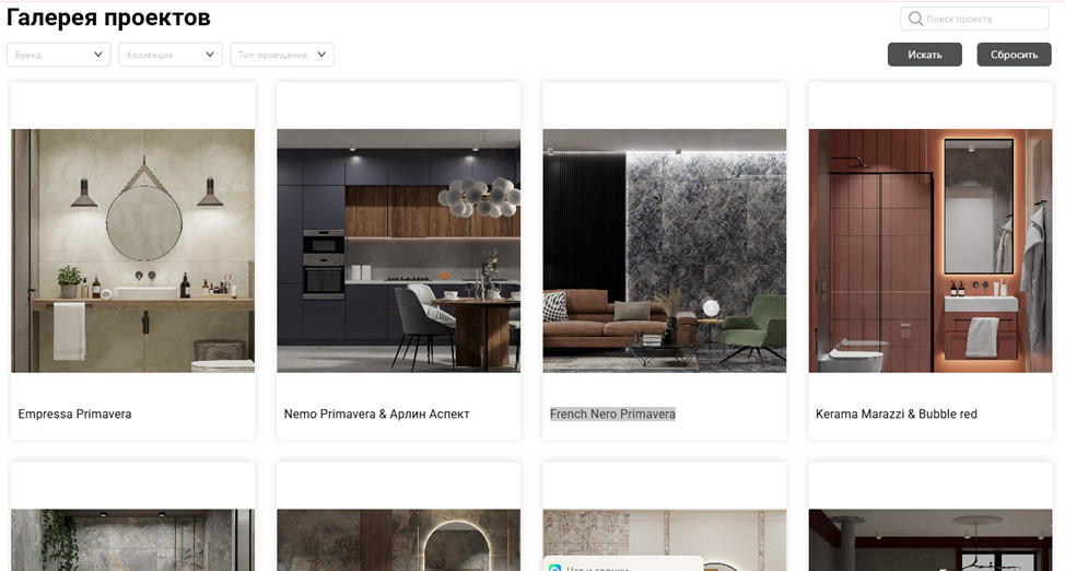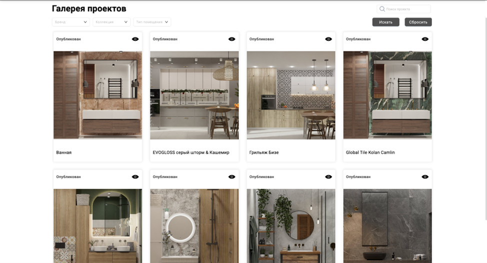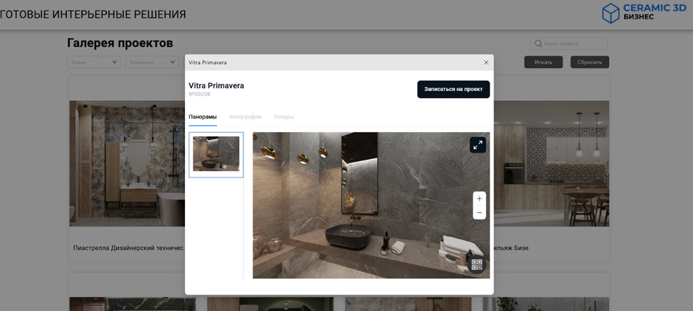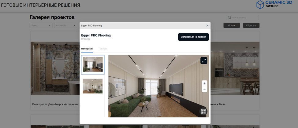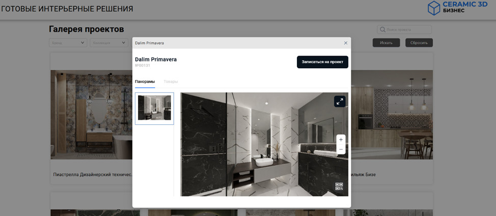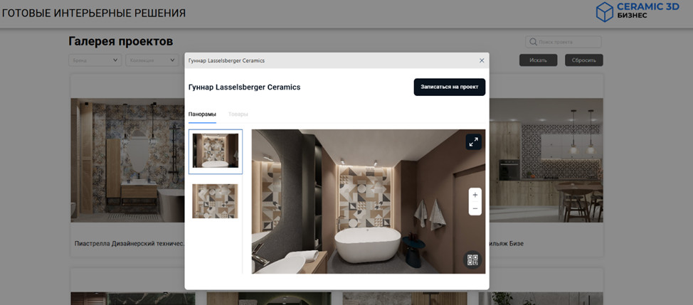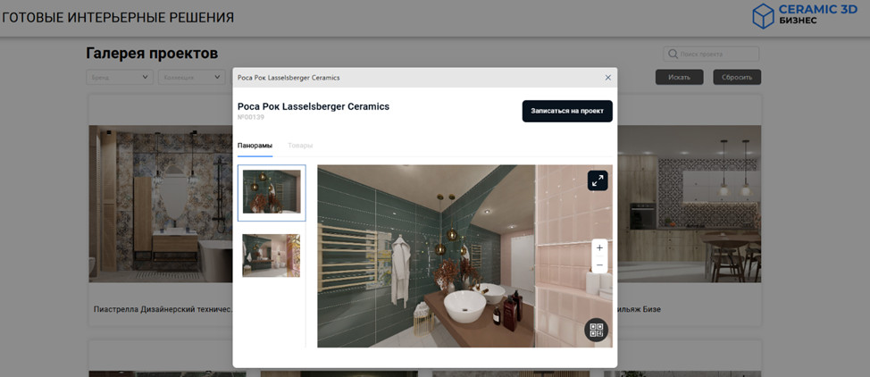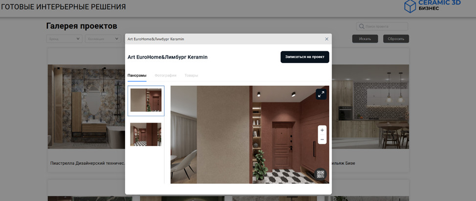 платформа Ceramic 3D Бизнес позволяет формировать галерею интерьеров для