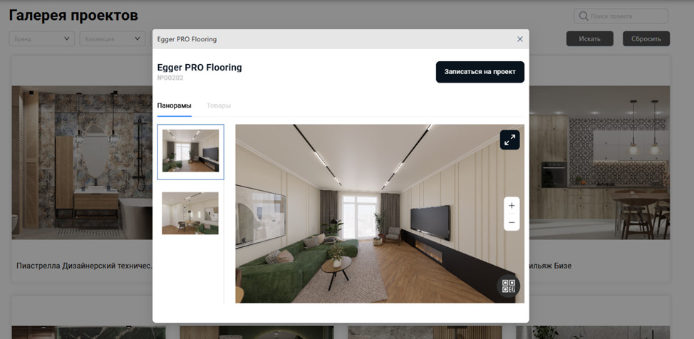 различных типов помещений и стилей. Покупатели могут просматривать проекты,