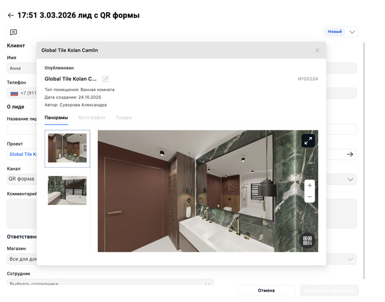 цифровой канал — панораму, форму заявки, лид в системе. QR коды