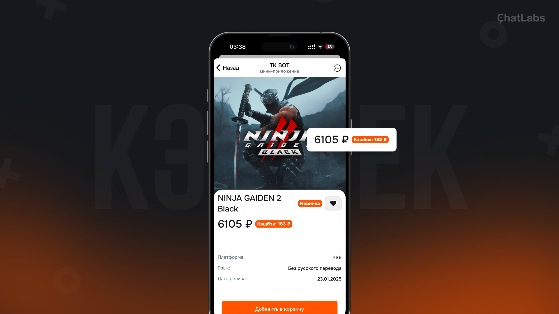 товар имеет свою уникальную карточку, кликнув на которую, пользователь переносится на отдельную страницу игры (опять же, всё в рамках приложения и самого Telegram). Там можно увидеть информацию о стоимости,