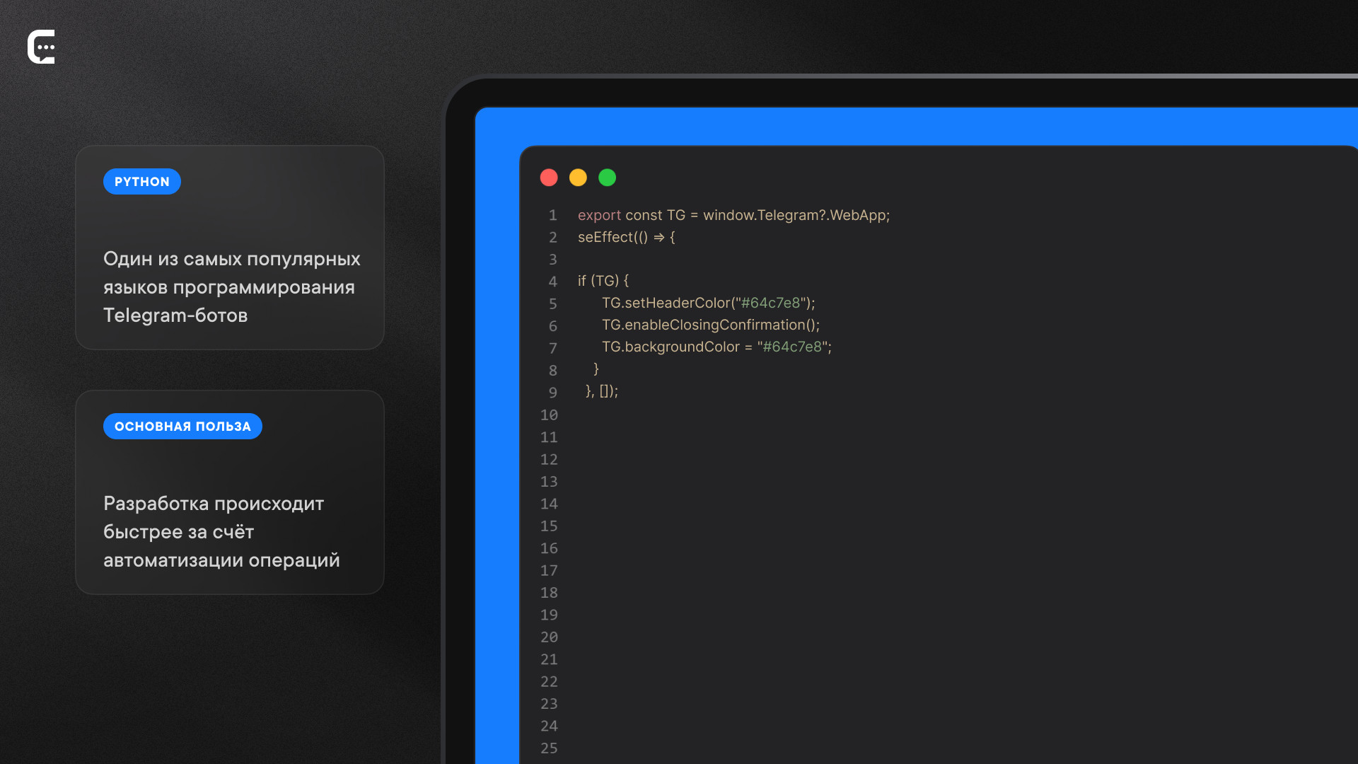 лучше всего подходят для реализации сложных проектов, с которыми не справится ни один Telegram-бот. Здесь речь идёт не о банальной автоматизации рутинных задач или об отправке шаблонов сообщений и уведомлений. Взаимодействуя