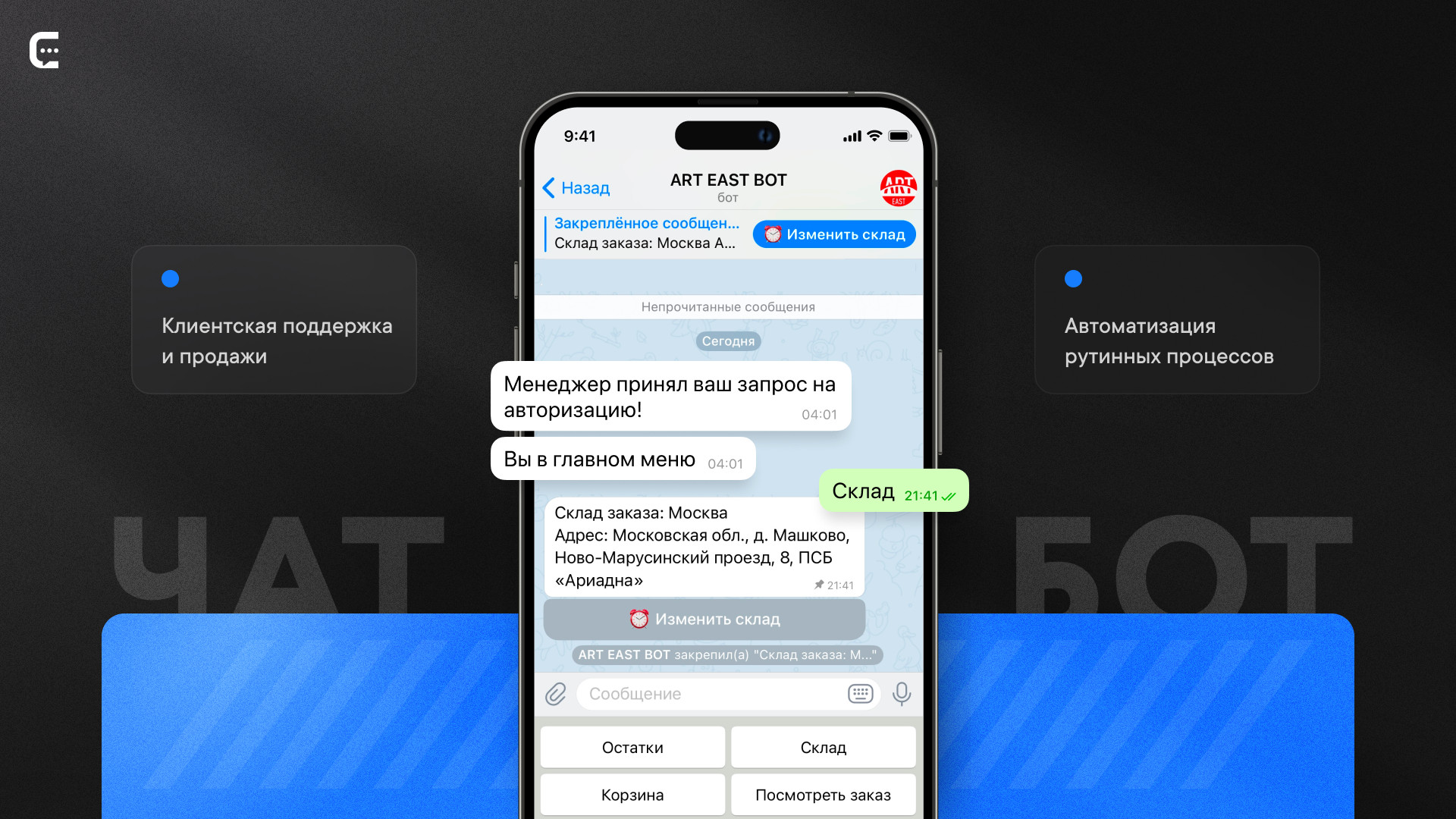 - Отправка стандартных сообщений (приветствия, инструкции, туториалы);