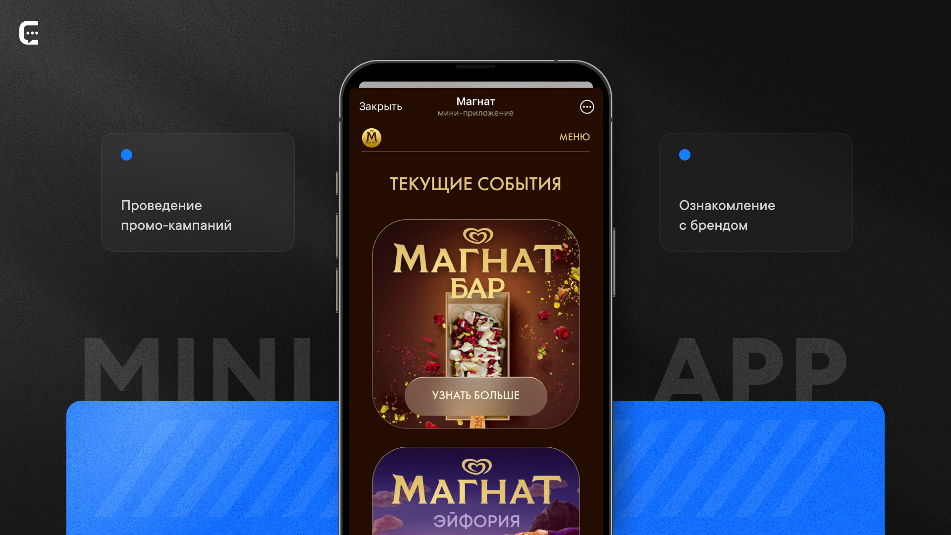 стопроцентно нужно смотреть в сторону разработки мини-приложения. Для примера можем привести один из кейсов компании ChatLabs. Запрос клиента заключался в создании полноценного Telegram Mini App для бренда мороженого «Магнат».
