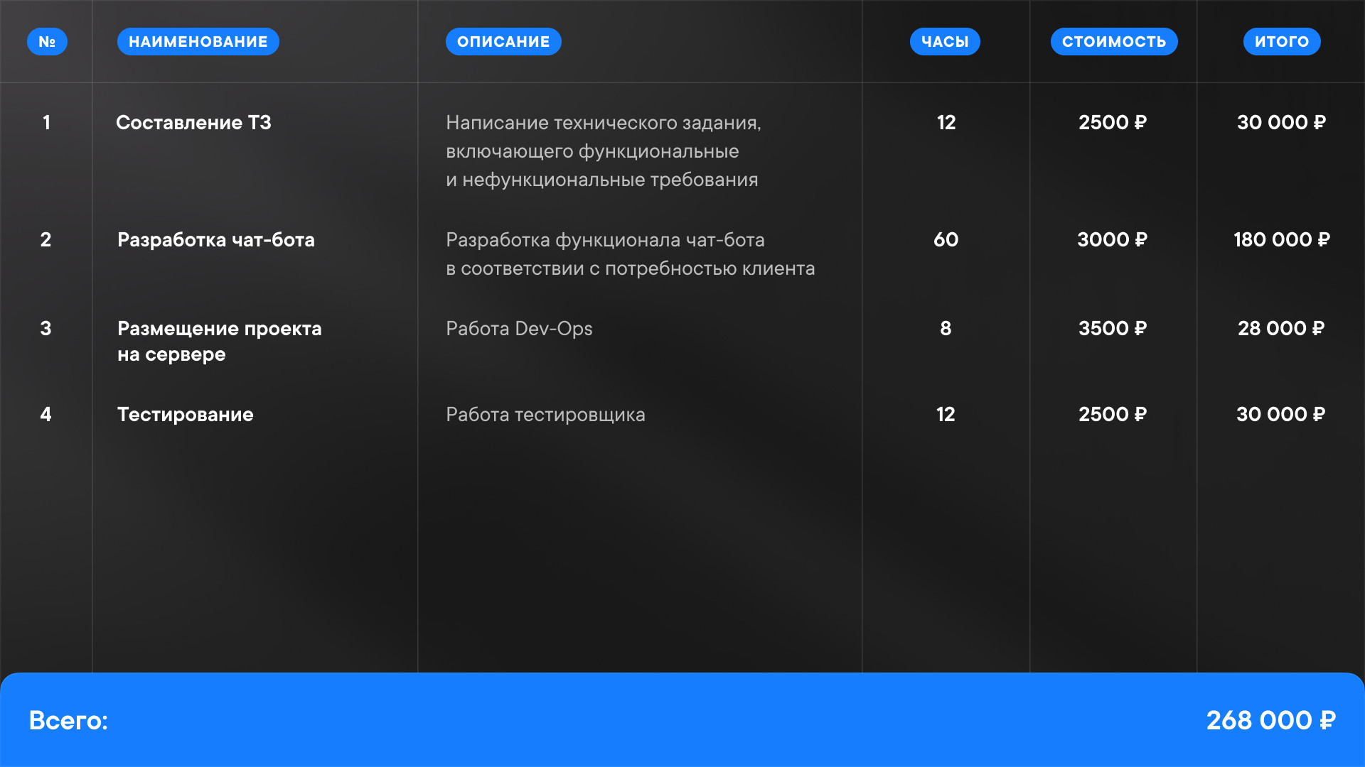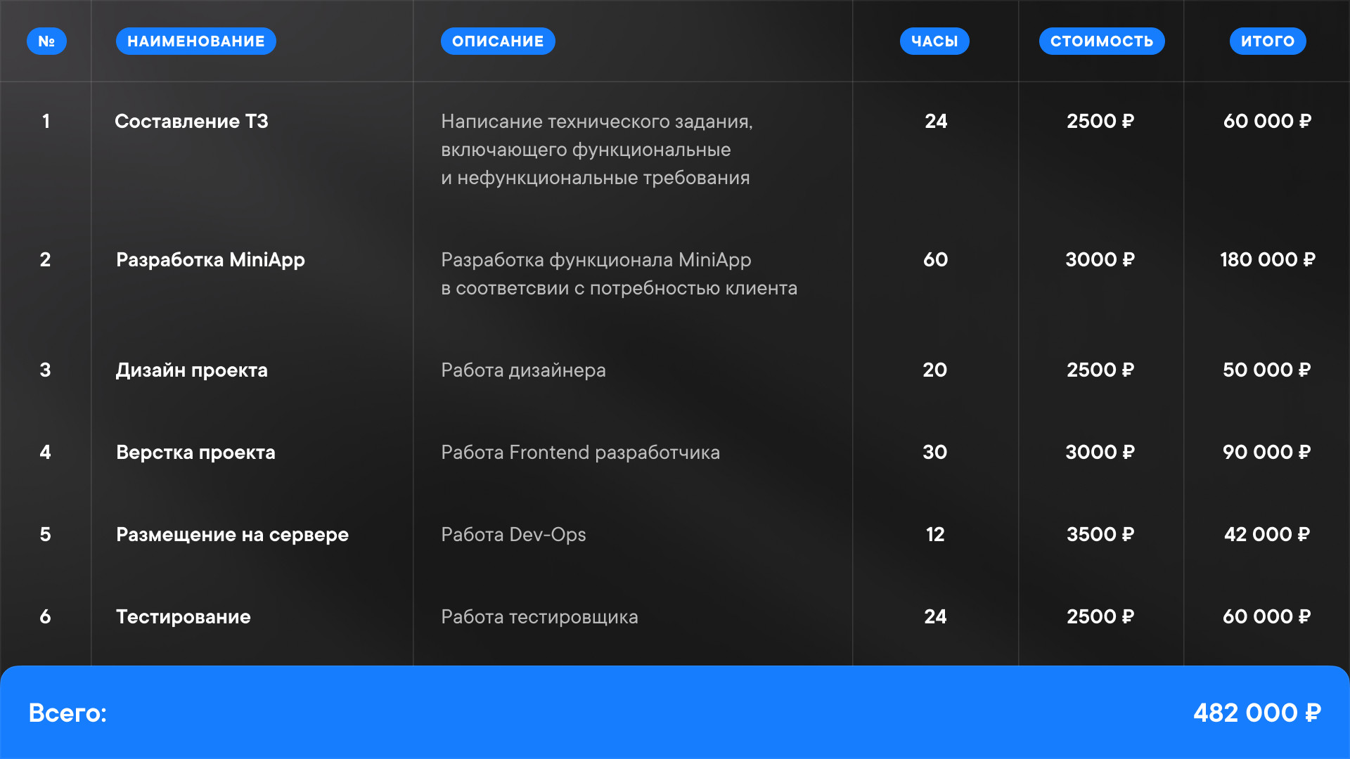 Например, можно увидеть, что немалую часть стоимости разработки мини-приложения составляют работы по дизайну и вёрстке. Эти два фактора увеличивают стоимость и время разработки в среднем на 60-100%.