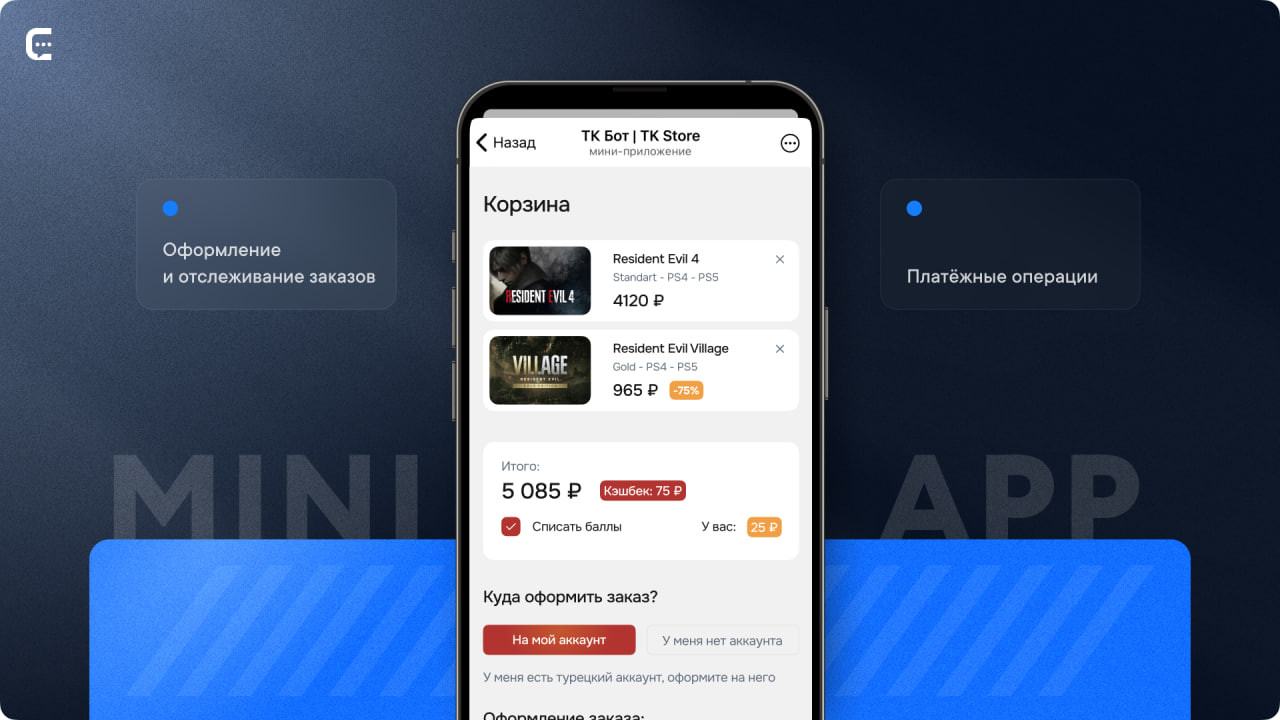 с Mini App, вы взаимодействуете с полноценным продуктом, с настоящим мобильным приложением, которое работает в рамках мессенджера. Соответственно, всё, что вы можете делать в стандартном сервисе, доступно и там, от прокачки персонажа и заработка внутриигровой валюты (если речь идёт о мини-играх) до добавления товаров в корзину и оформления заказа (если, например, мы используем аналог интернет-магазина). Сложный