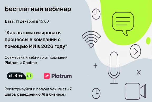 Регистрируйтесь сейчас: https://chatme.ai/webinars/chatme-platrum/?utm_source=social&utm_medium=social&utm_campaign=webinar_platrum_dec2025