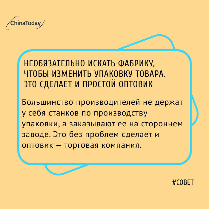 У большинства китайских заводов нет таких мощностей, чтобы обеспечить весь цикл производства товара — от материалов до коробки и печати надписей. Так как они не окупят такое количество станков. Поэтому многое они заказывают у заводов-партнеров: на заводе упаковки — упаковку, на фабрике пресс-форм — пресс-формы, в типографии — печать бирок и т.д.