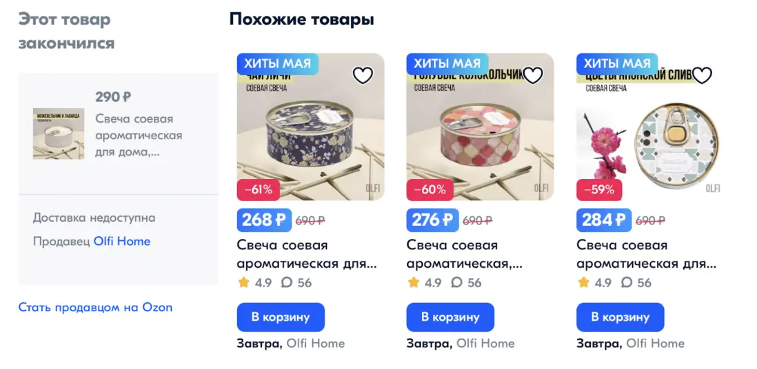 - не подключено рекламное продвижение, трафареты, брендовая полка, баллы за отзывы;