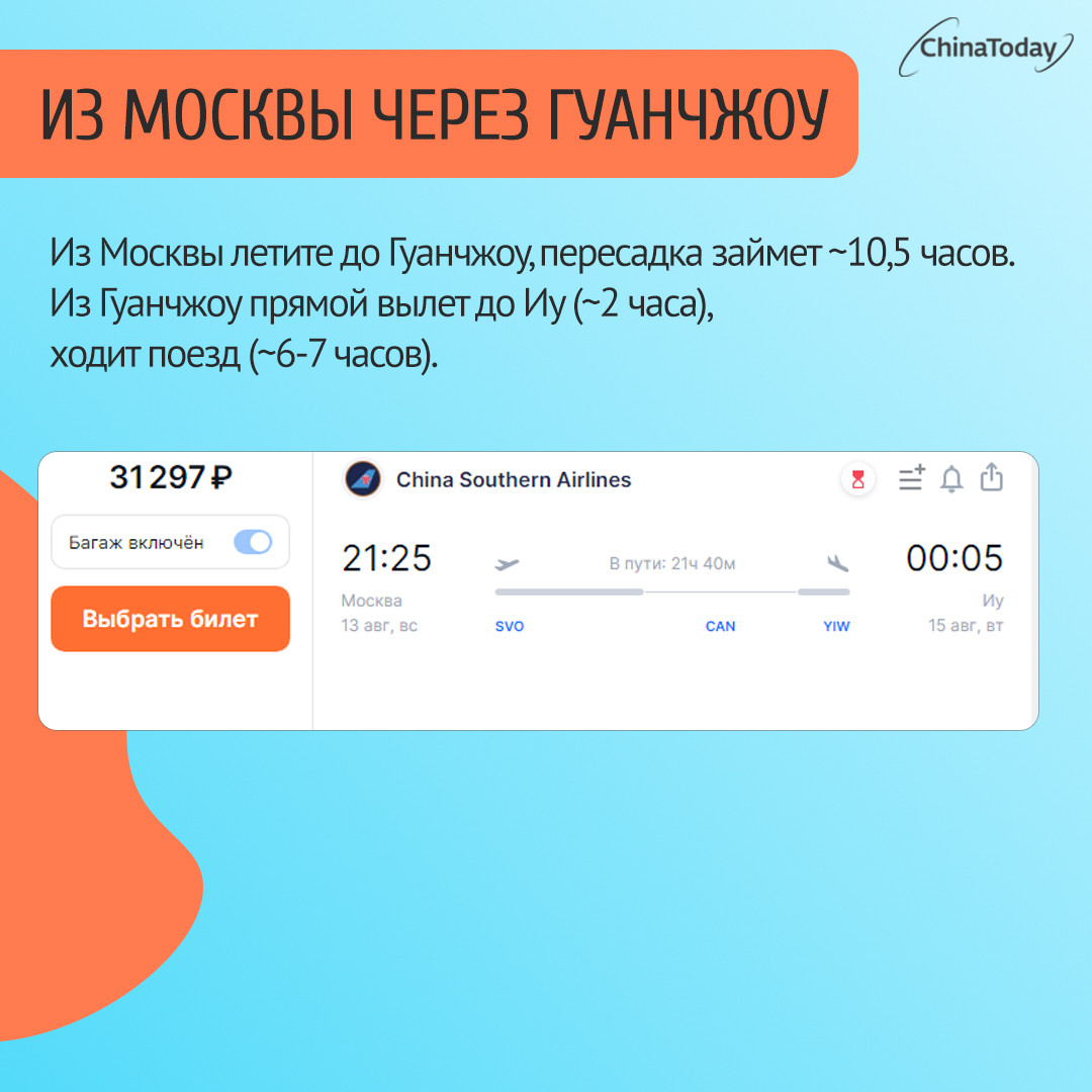 - На самолете до Иу с пересадкой в Пекине, Гонконге или Гуанчжоу.