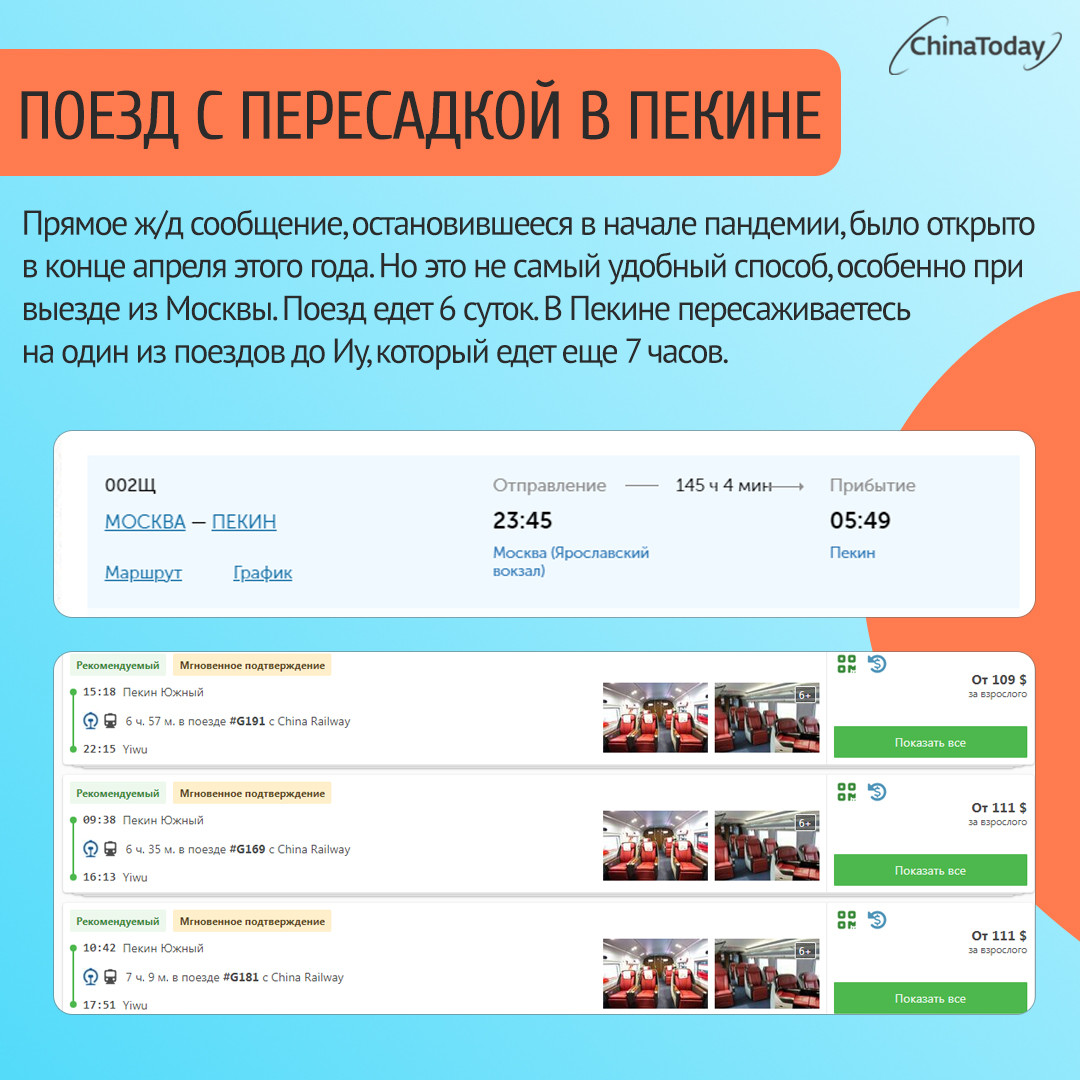 - На самолете до Шанхая → на скоростном поезде из Шанхая до Иу.