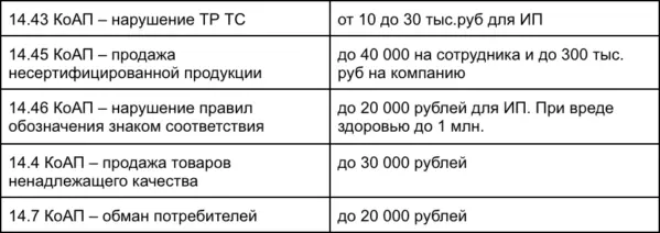 - Штрафы за несоблюдение технических регламентов и правил торговли.