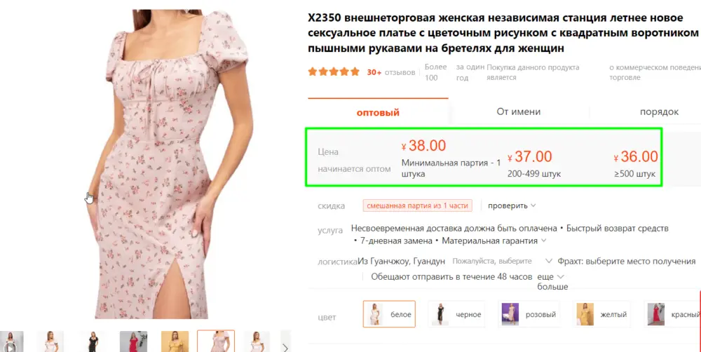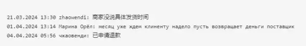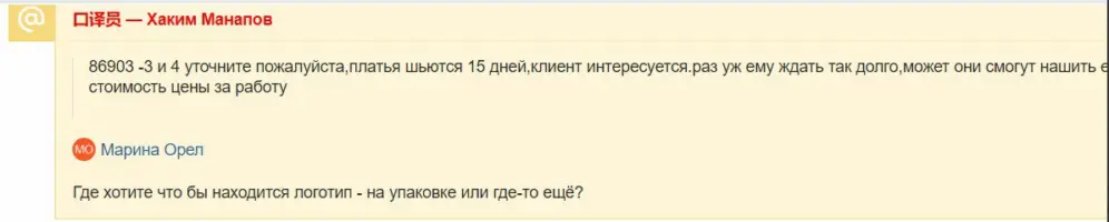Всю полученную от поставщиков информацию собрали и добавили в клиентскую табличку. Наталья изучила информацию по поставщикам. По одной из позиций товара не было в наличии, и производитель пообещал отшить платья за 15 дней. Поэтому клиентка попросила узнать у него, можно ли в платья вшить бирку с лого и нанести логотип на упаковочный пакет — цена работы, сроки. А также уточнить у всех поставщиков минимальное количество товара, чтобы получить максимальную скидку. Переводчики пообщались со всеми производителями и вот, чего удалось добиться: Если вы самостоятельно делаете заказ на 1688 или другой китайской площадке, обратите внимание на карточку товара. Некоторые производители указывают варианты цены в зависимости от количества единиц в заказе. Если такой градации нет, напишите сообщение поставщику. Но не спрашивайте «минимальное количество, от которого начинается максимальная скидка». На такой запрос китайские поставщики не ответят — это особенности ведения бизнеса в Китае. Нужно отправлять четкий запрос, сколько штук хотите купить: 100, 500, 100000 шт. Исходя из количества, суммы заказа, наличия на складе, китайцы говорят, какую скидку дадут. Но не все с этим заказом было гладко. Производитель женских брюк обещал доставить товар через 10-15 дней. Прошел месяц, а товар на наш склад в Иу так и не поступил. Поставщик «кормил завтраками», но ничего не менялось. В итоге клиентке надоело ждать, поэтому решили отменить заказ. Так как оплату проводили через 1688, то для возврата денег достаточно оформить возврат. Ведь на 1688 действует механизм защиты сделки. Деньги за заказ сразу не зачисляются на счет поставщика, а замораживаются площадкой. Продавцу они поступят, только когда клиент подтвердит, что получил товар без брака. Или когда выйдет срок для открытия спора — его магазины выставляют самостоятельно, но не менее 14 дней с момента оплаты При необходимости срок для открытия спора продлевается. Если с заказом что-то не так, можно легко отменить его и получить обратно деньги. В течение дня деньги вернулись на наш счет, а дальше — на клиентский. Отличился и еще один поставщик — тот, с кем была договоренность по логотипу клиента. Товар поступил на склад вовремя, но ни на бирке, ни на упаковке не было клиентского лого! А ведь эта услуга была оплачена. Наша клиентка — лояльный покупатель, поэтому приняла товар без лого. Спойлер: качество платьев ей очень понравилось и Наталья уже запланировала повторный заказ у этого производителя. Но менеджер не оставила эту ситуацию без внимания. Вот что она сделала ↓ Письмо перевели на китайский язык и отправили производителю. Китайцы умеют признавать свои ошибки, особенно если видят перспективного клиента. Поэтому Наталью ждет хорошая скидка. В итоге заказали 960 шт. платьев и топов разных цветов и размеров. По затратам: Товар от поставщиков приходил в разное время. Каждую позицию принимали, делали фотоотчет и отправляли клиентке на согласование. Наталья хотела сэкономить на доставке, поэтому для отправки выбрали тариф «Медленное авто» — карго через Киргизию. По ее просьбе мы не ждали, пока весь заказ прибудет на склад — товар отправлялся по готовности в ближайшей фуре, следовавшей в Россию. Весь товар из заказа прибыл в Россию и почти вся партия одежды уже распродана на маркетплейсе. А на начало мая Наталья заплани