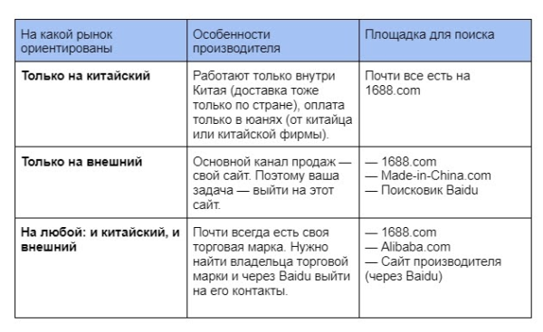 Первая группа — это производители, которые сами занимаются поиском покупателей, поэтому так или иначе представлены на онлайн-площадках. Где таких искать, смотрите в таблице ↓