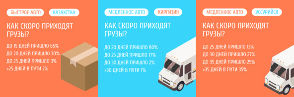 Подвели статистику по срокам прибытия грузов, которые отправили Быстрым авто через Казахстан и Медленным через Киргизию и Уссурийск за период с 15.12.24 по 15.01.25, результаты в карточках к посту.