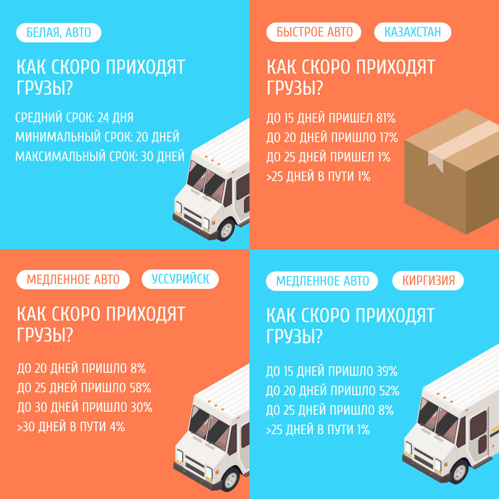 Подсчитали сроки доставки белых заказов, которые отправили фурами в январе 2025 года. Вот что получилось: