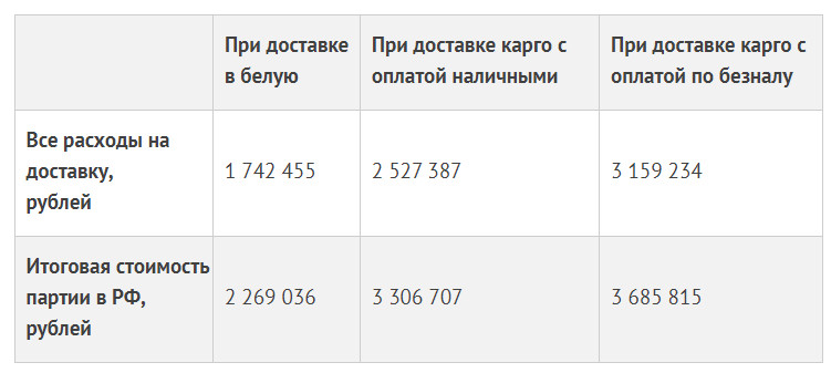 В графе «Итоговая стоимость партии в РФ» учтены все расходы на закупку: стоимость товара, доставки из Китая в город клиента, наши услуги, сертификация, налоги и пр.