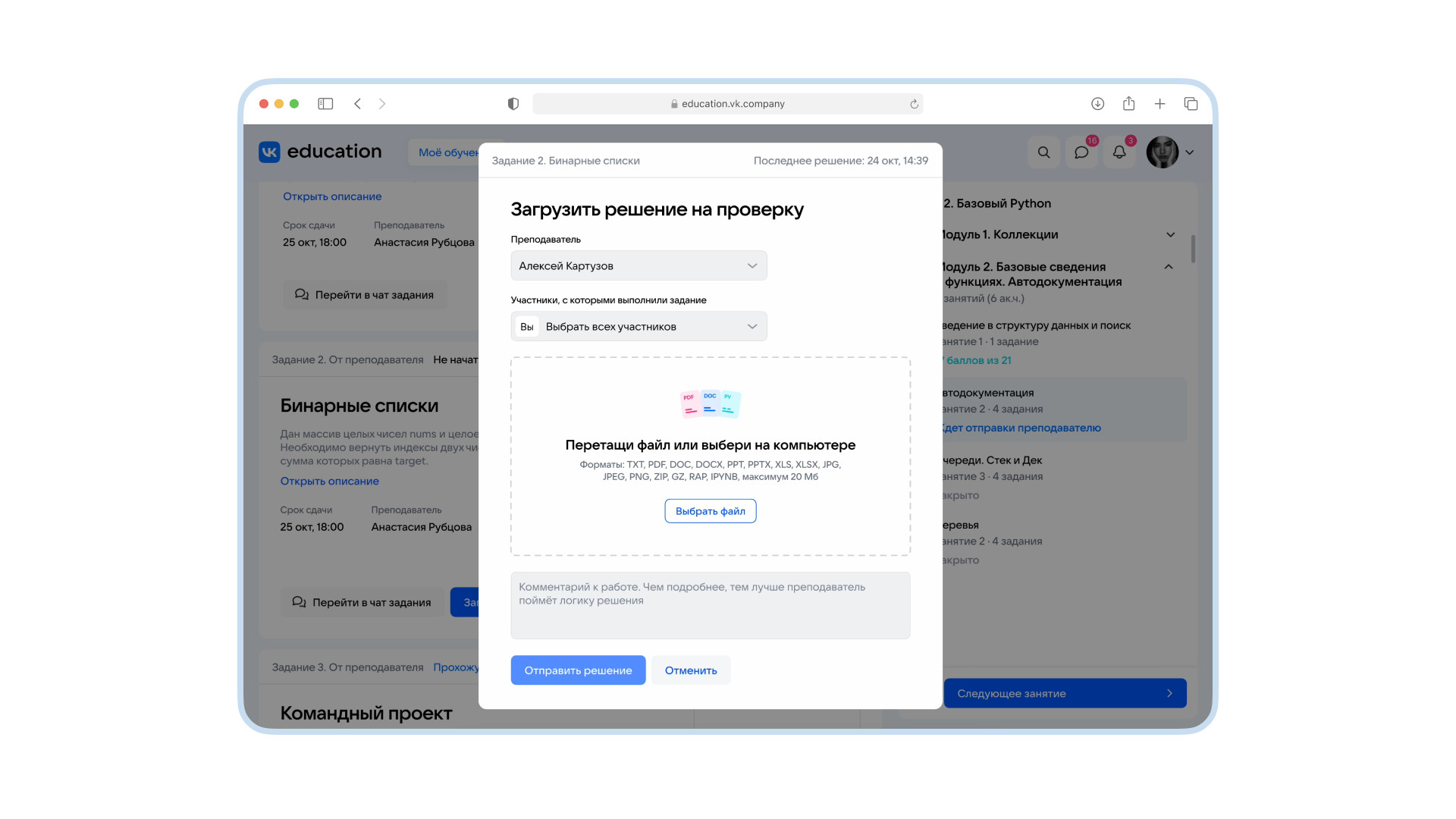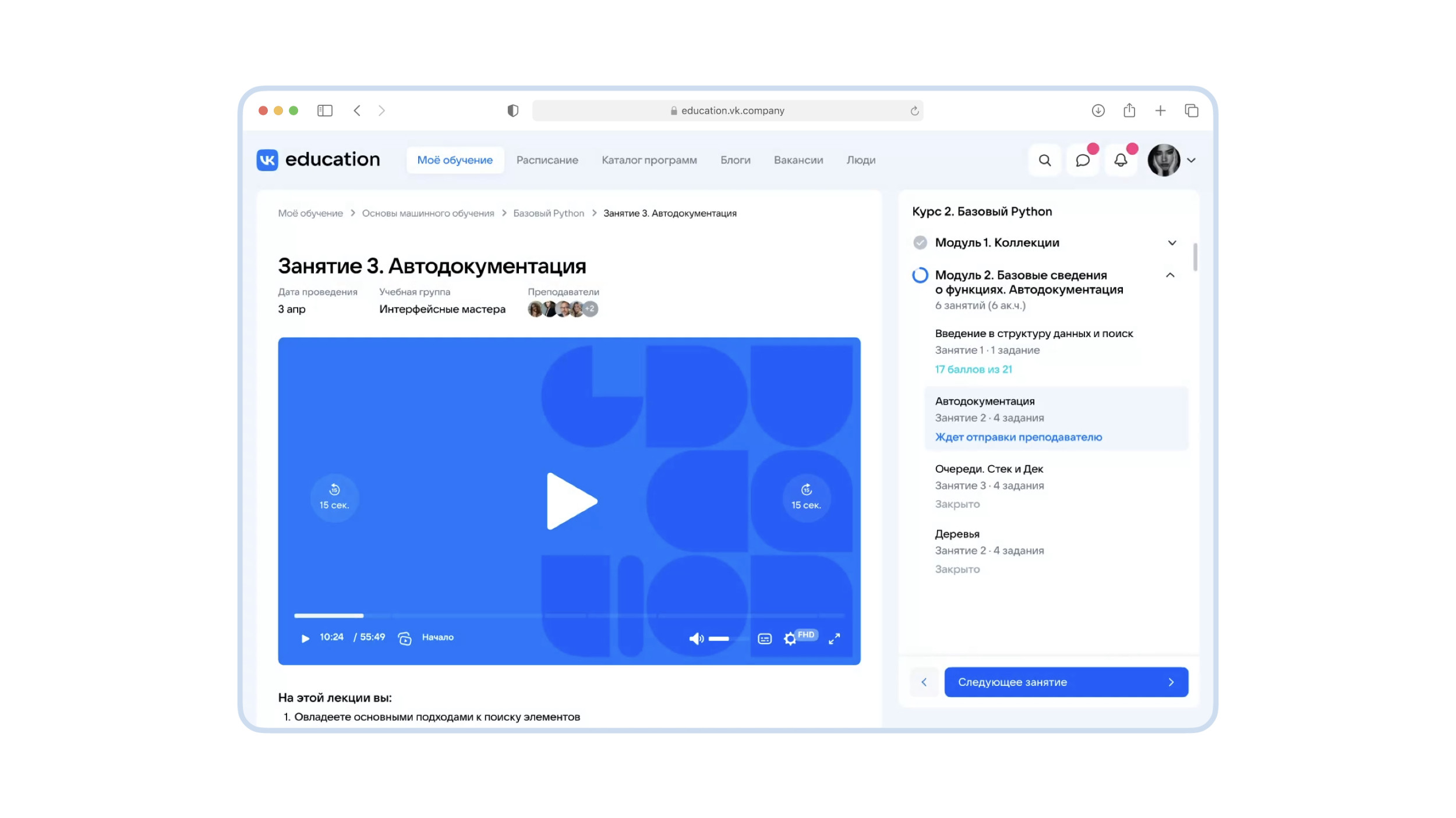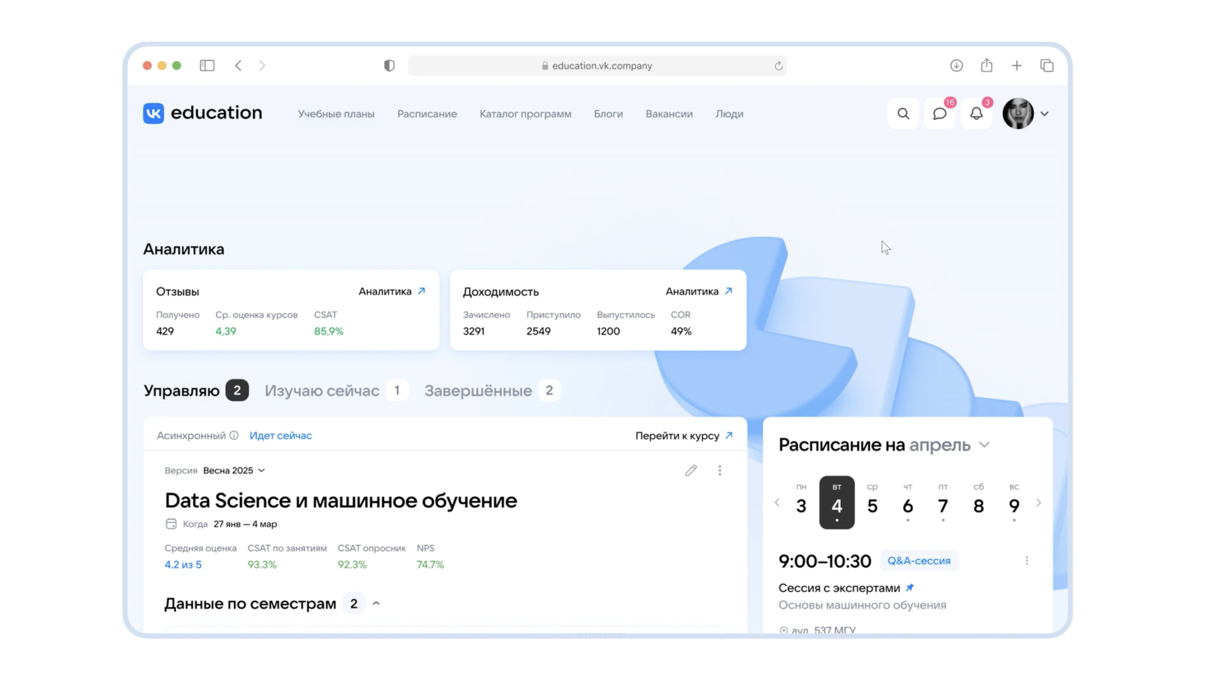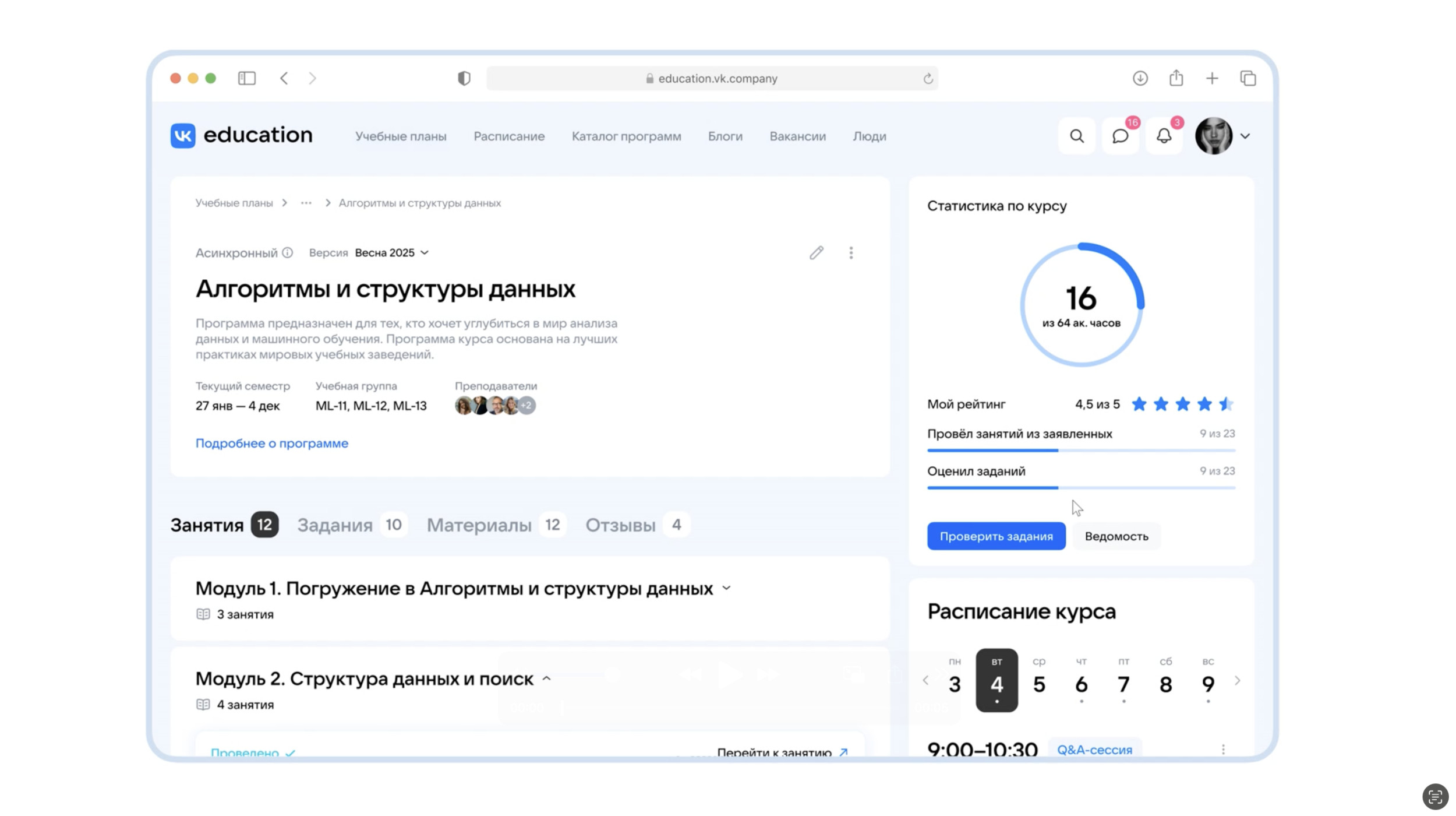 VK Education — это главная образовательная платформа VK, которая помогает школьникам, студентам, учителям и IT-специалистам прокачивать навыки и строить карьеру в digital-сфере. Немного цифр: Платформа уже работала и приносила результаты, но требовала редизайна. Навигация сложная, интерфейс устарел, а доходимость до конца курса (COR) — ниже, чем хотелось бы. Вот как система выглядела до редизайна: Чтобы VK Education продолжала расти и развиваться, нужно было не просто обновить визуал, а сделать платформу удобной и интуитивно понятной. Какие задачи перед нами стояли: Что было важно для VK: Проект был амбициозный, требовательный и долгий — 9 месяцев работы, десятки итераций, но в итоге мы сделали продукт, который решает задачи и бизнеса, и пользователей. Как именно — рассказываем дальше. Сперва расскажу, как мы взяли проект. Мы всегда подходим к пресейлу не как к формальности, а как к стратегическому этапу, который помогает выстроить эффективный процесс работы. Мы понимали, что в крупных корпорациях процесс согласования часто сложный и многоуровневый. Если начинать с глубокой аналитики и проектирования, это может затянуться из-за долгого рассмотрения документов и обсуждения. Поэтому мы изменили стратегию: первым шагом предложили сделать дизайн-концепцию, чтобы сразу продемонстрировать направление и сократить сроки согласования со стороны VK. Это позволило быстро получить фидбэк от клиента и на раннем этапе определить ключевые визуальные принципы. Благодаря тому, что мы погрузились в проблему клиента и предложили нужное решение — оно оказалось самым лучшим и мы смогли забрать проект. Первым шагом стала работа с мудбордами и референсами. Мудборды — это важный этап на пути к созданию классного дизайна. С их помощью мы не просто собираем красивые картинки, а задаем направление, ловим настроение будущего продукта и помогаем клиенту понять, каким он получится. Берем референсы из интернета или из наших прошлых проектов, собираем презентацию и показываем возможные векторы — так сразу становится понятно, в какую сторону двигаться дальше и что ждать от финального результата. На этапе презентации мы предложили два противоположных направления: 1. Дружелюбность — визуально мягкий, персонализированный стиль. 2. Сервисность — строгий, структурированный стиль. Вместе с клиентом мы поняли, что платформа должна сочетать оба подхода: сохранять структурированность, но при этом выглядеть дружелюбно и современно. На этапе проработки дизайн-концепции мы взяли в работу две страницы: учебных программ и страницу урока с домашним заданием. Первая содержит переиспользуемые элементы, а вторая насыщена контентом и требовала четкой структуры. Уже на этапе драфта смогли понять в верном ли направлении двигаемся, как хотим чтобы выглядели блоки и где они должны располагаться. Здесь, мы как студия всегда закладываем в концепцию больше свежий идей, чем может принять клиент, чтобы потом отсеивать, а не добавлять. Это позволяет поднять финальное качество выше изначальных ожиданий. В итоговом концепте мы создали лёгкий, просторный дизайн с мягкими формами и наклонными элементами, придающими интерфейсу динамику и ощущение «зефирности» . Овалы стали ключевым графическим приёмом, добавляя плавность и визуальную целостность. Когда мы презентовали концепцию, команда клиен