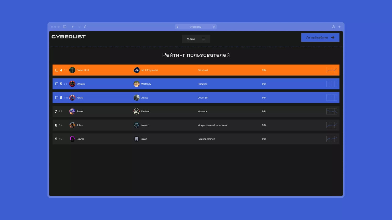 В рейтинге видно, кто растет, а кто держит планку