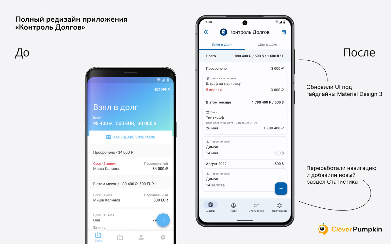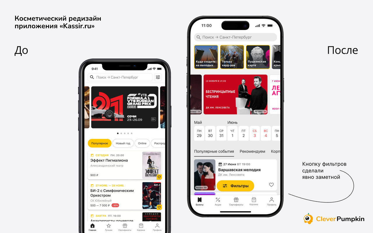 Мы — компания CleverPumpkin, занимаемся разработкой мобильных приложений и цифровых продуктов, берём на себя весь цикл — от идеи до запуска и поддержки. В этой статье наш дизайнер интерфейсов Фёдор Миронов расскажет какие бывают типы редизайна, как определить целесообразность изменений, какие исследования важно провести до начала работ и как избежать ошибок, которые могут стоить слишком дорого.