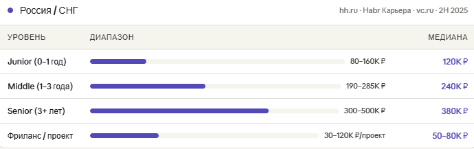 AI-интегратор из СНГ получает в России 240K ₽ в месяц. Тот же специалист на Upwork с английским $45/час × 160 часов = $7 200 в месяц. Это в 3–4 раза больше при той же квалификации. Разница не в умениях, а в рынке. Поэтому инвестиция в английский язык параллельно с техническими навыками это буквально инвестиция в утроение дохода.