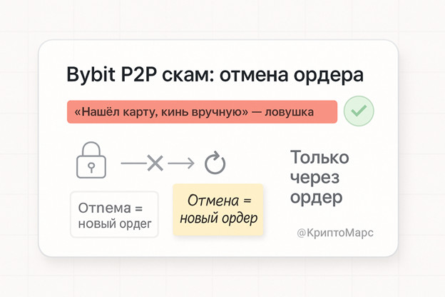 P2P остаётся безопасным только пока всё делается внутри ордера. Как только звучит: «переведи отдельно», «я потом верну», «давай вручную» — это моментальный стоп.