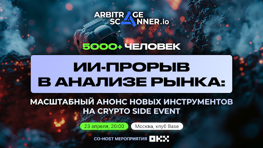 23 апреля в Москве запланирован самый масштабный крипто сайд-ивент: команда ArbitrageScanner собирается рассказать о новом продукте, который призван перевернуть понимание криптанов об анализе и привнесет что-то новое на рынок криптовалют и IT. Команда проекта заверяет, что аналогов нового продукта в мире нет, и все те, кто будет на презентации, станут пионерами в измененном подходе к анализу рынка.