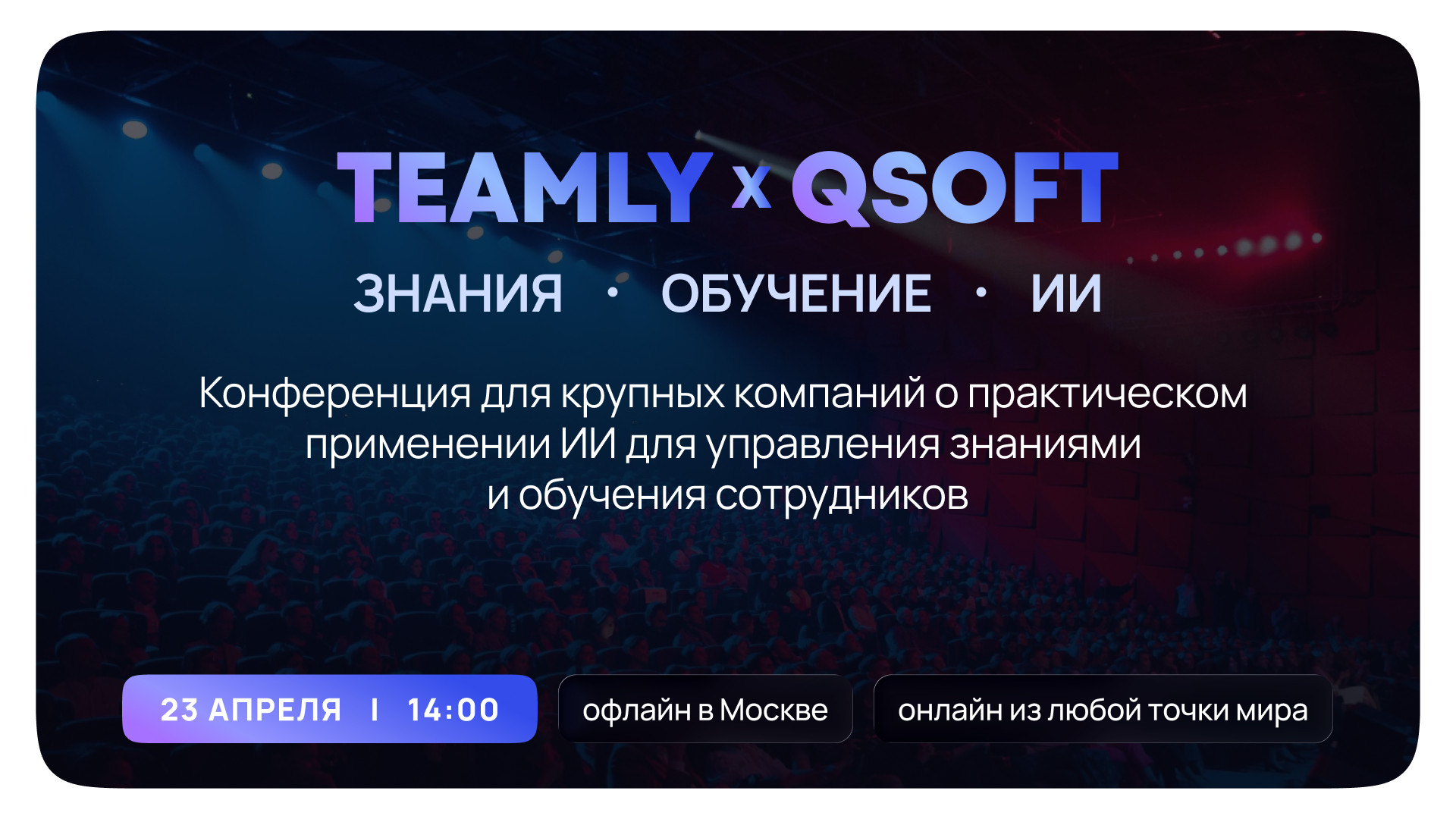 Как ускорить адаптацию, снизить затраты на обучение и повысить эффективность команд с помощью искусственного интеллекта — все это будут обсуждать на конференции TEAMLY × QSOFT 23 апреля.