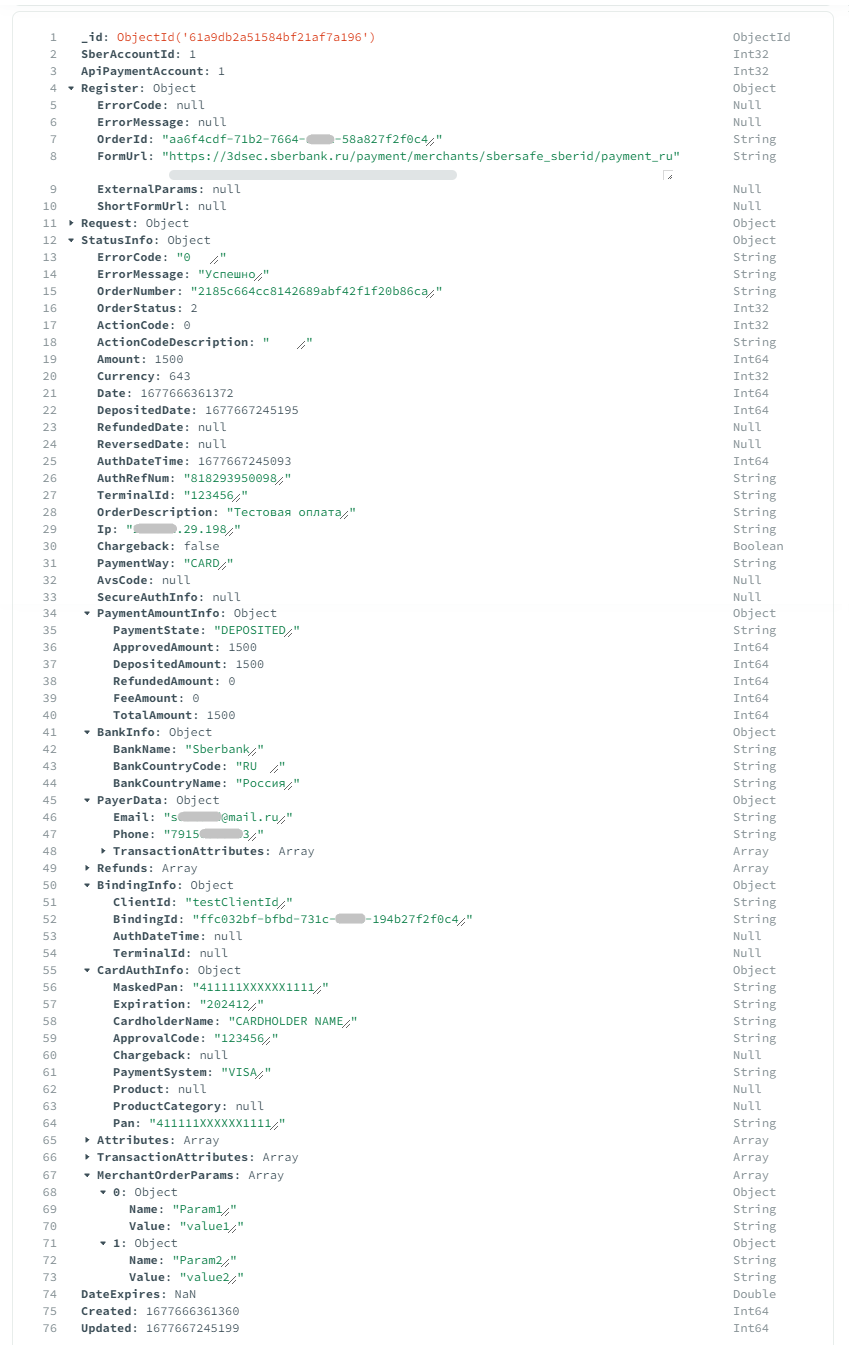 } Итак, чтобы callback работал, нужно создать свой API, к которому будет стучаться Сбер c запросами, содержащими данные об операции, начиная с orderId. При обращении Сбер ожидает получить ответ 200, если приходит что-то другое, он делает еще несколько попыток с интервалом 10 минут. Когда платежный шлюз производит редирект по нашему returnUrl, он параллельно делает запрос на наш бэкенд по callback-урлу, указанному в ЛК Сбера. Времени хватает, чтобы по callback-урлу актуализировать статус заказа на оплату и отобразить корректную информацию пользователю. Но в реальности бывают случаи, когда запрос по callback приходит позже или вовсе не приходит. Например, в нашем опыте был случай, когда во время ночных технических работ на стороне Сбера отчеты о проведенных платежных операциях не пришили через callback, и мы мы не могли вовремя актуализировать статус некоторых заказов. Поэтому надо иметь запасной план — собственно, сам Сбер рекомендует опрашивать их сервис по каждому проведенному платежу. Таким образом, дополнительно к callback-обработке, статус заказа на оплату нужно актуализировать и на запросах от нашего клиентского приложения, которые выполняются после того, как мы вернулись в приложение по returnUrl. И периодически их актуализировать — это дает дополнительную надежность и гарантию хранения информации по заказам на оплату в актуальном состоянии. Для этого мы используем планировщик, который периодически прогрессивным способом (сперва раз в минуту, потом каждые десять минут и т.д.) опрашивает API банка о проведенной операции. Не стоит стучаться туда постоянно, может сработать ddos-защита, но вообще подобные запросы помогают. Например, пока мы работали только через callback, пользователь ждал статуса около 30 секунд, когда стали актуализировать заказы на оплату по запросам с клиентского приложения или планировщика — время снизилось до секунды. Наиболее удобный и предпочтительный способ хранения — документоориентированная СУБД. Запрос на создание заказа и оплату содержит большой набор параметров, а ответ — еще больше, в нем три уровня данных, и раскладывать все это в реляционную СУБД — затратная операция. А в noSQL базе можно просто сохранить пришедший JSON, не пытаясь его распарсить. Мы используем MongoDB, но можно выбрать и другую СУБД, позволяющую хранить и обрабатывать данные в json формате. В Mongo все это выглядит как-то так: Данные стоит хранить в трех коллекциях: Особенность маркетплейсов в том, что на них можно набрать в одну корзину товаров от разных поставщиков, причем сам список поставщиков не постоянен. Как же продавцы получат деньги, если все запросы на регистрацию заказа идут от одного мерчанта — маркетплейса? В случае Сбера есть специальные запросы API: запрос распределения платежа по конечным получателям и возврат статуса перечисления платежей поставщикам. Пример: пользователь купил десять товаров от десяти разных поставщиков, платеж прошел. Через некоторое время Сбер делает запрос информации о том, как нужно распределить этот платеж. Приходит id платежа, а мы должны предоставить детализацию заказа, сколько кому надо перевести. Надо учитывать, что Сбер может повторить этот запрос, и мы должны будем вернуть тот же самый ответ. После того, как шлюз распределит платеж по расчетным счетам, он сделает еще один callback-запрос, сообщающий, что деньги успешно разошлись. В целом,
