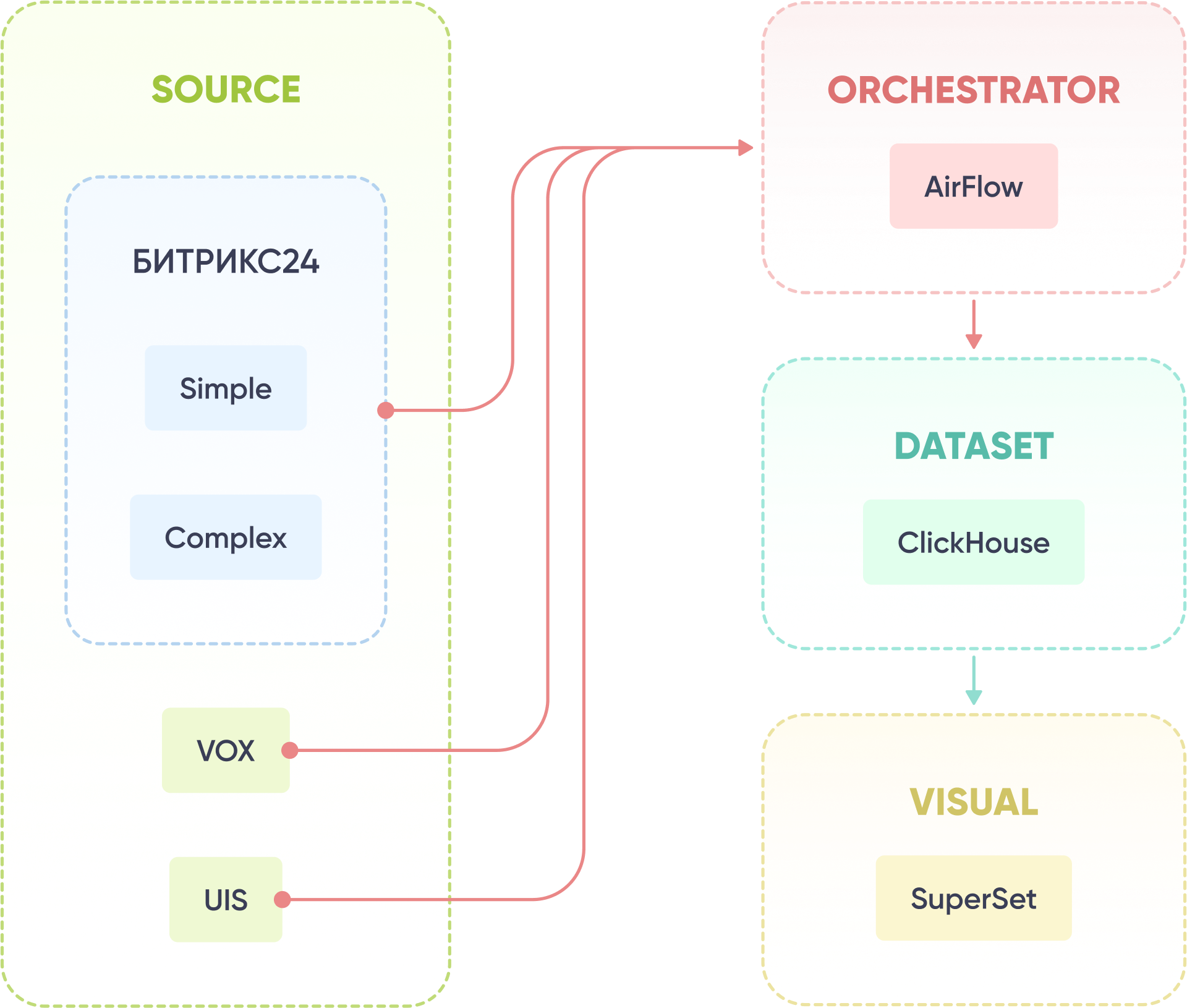 - Развитие инструментов бизнес-аналитикиРазработка ETL-системы для построения дашбордов.