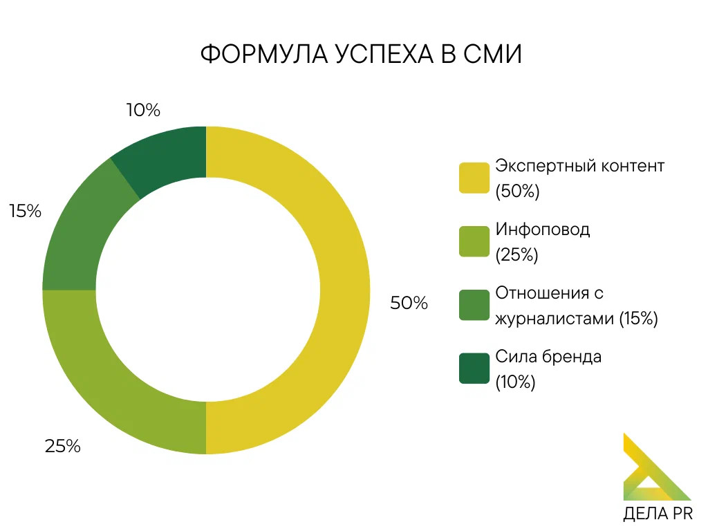 Экспертный контент (50%). Журналистам нужны эксперты так же, как журналисты экспертам. Без такой экспертизы, как в Дела PR, не выйдет ни одного серьезного аналитического материала, и она отлично дополнит любую новость. Это особенно важно для лидирующих изданий, ведь топ подразумевает качество.