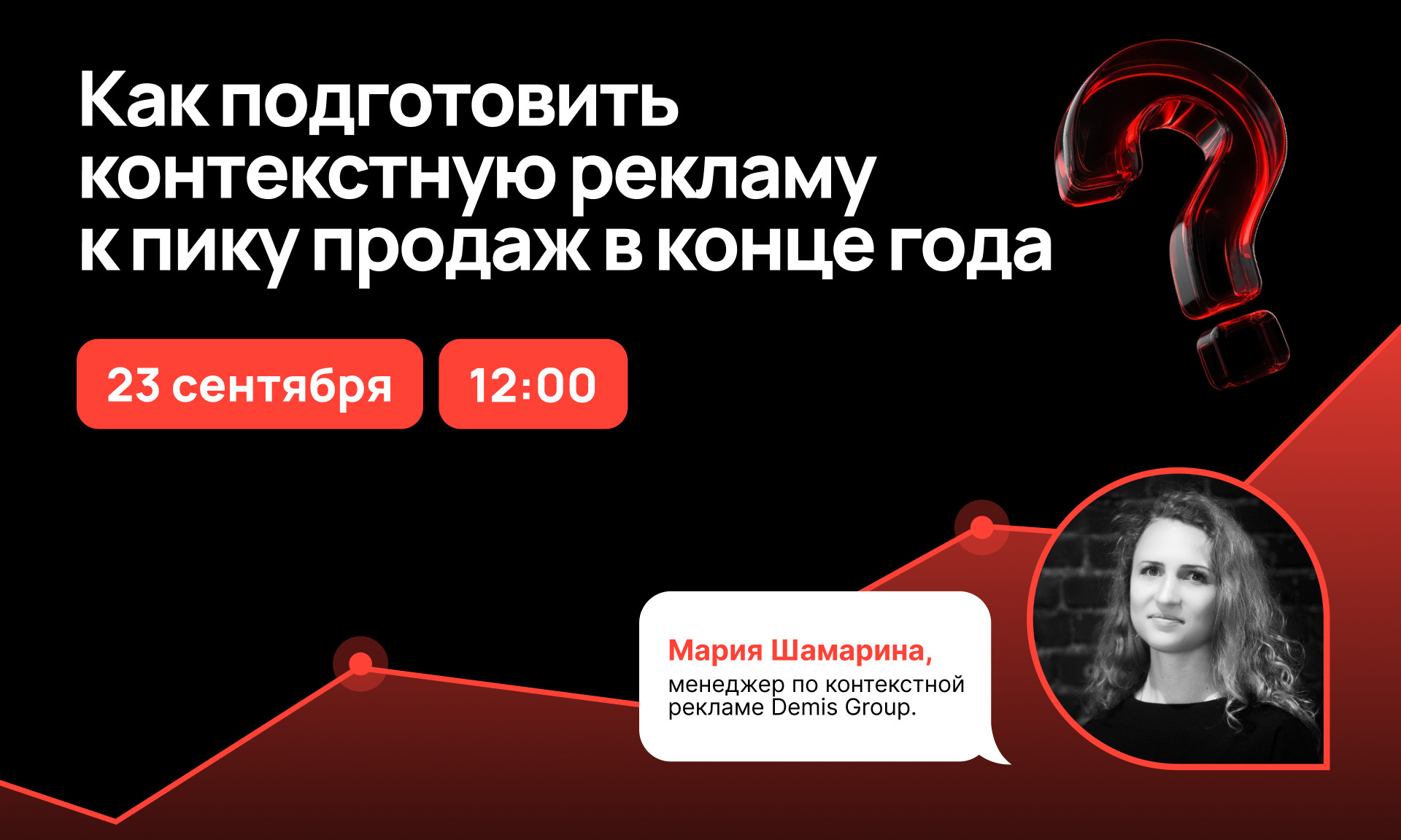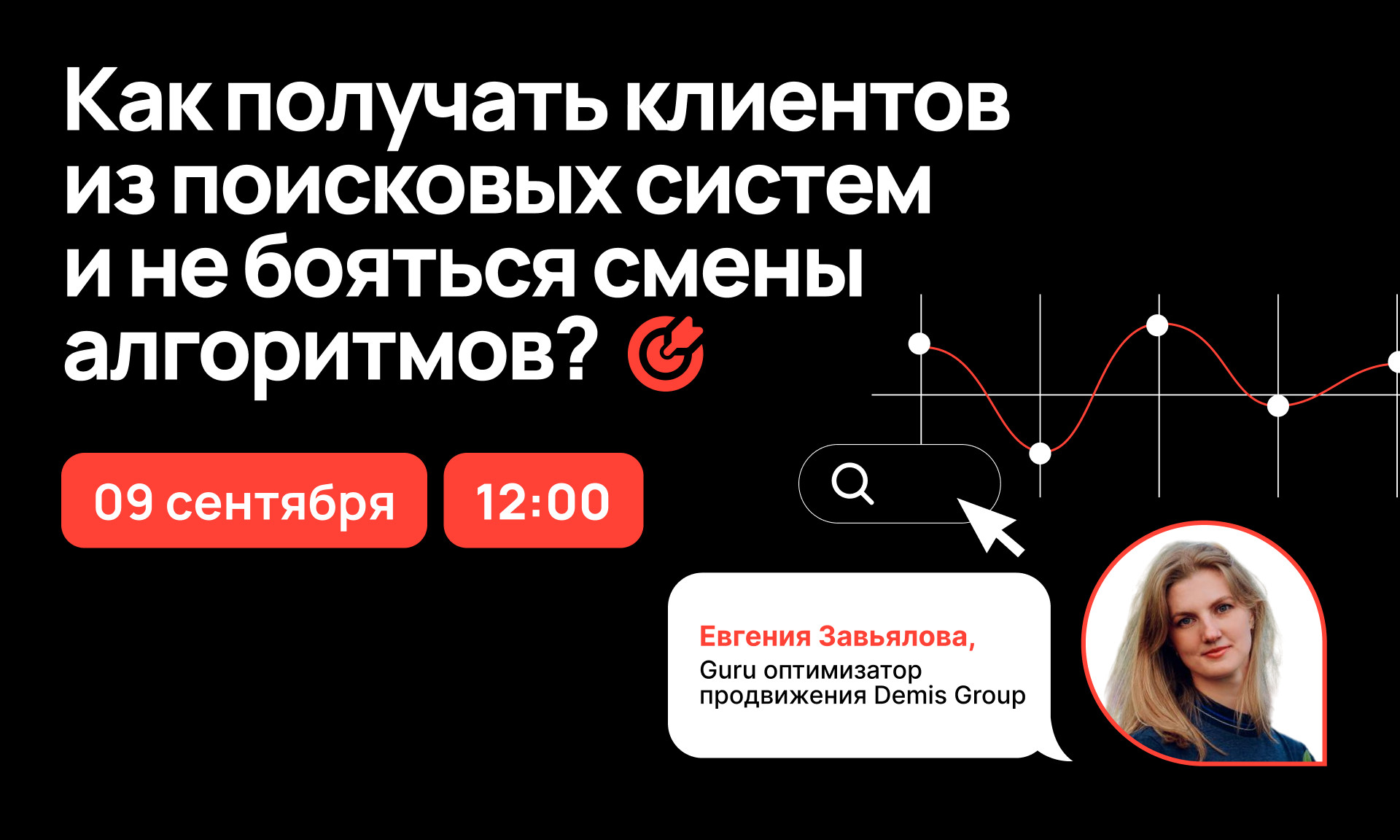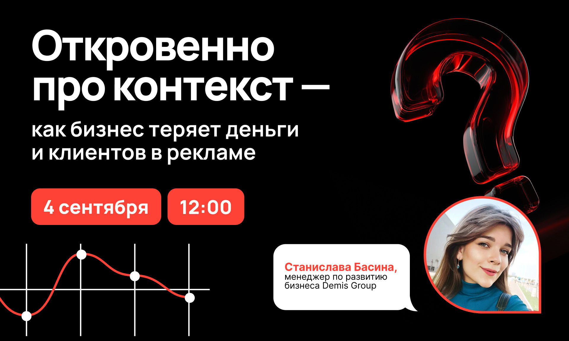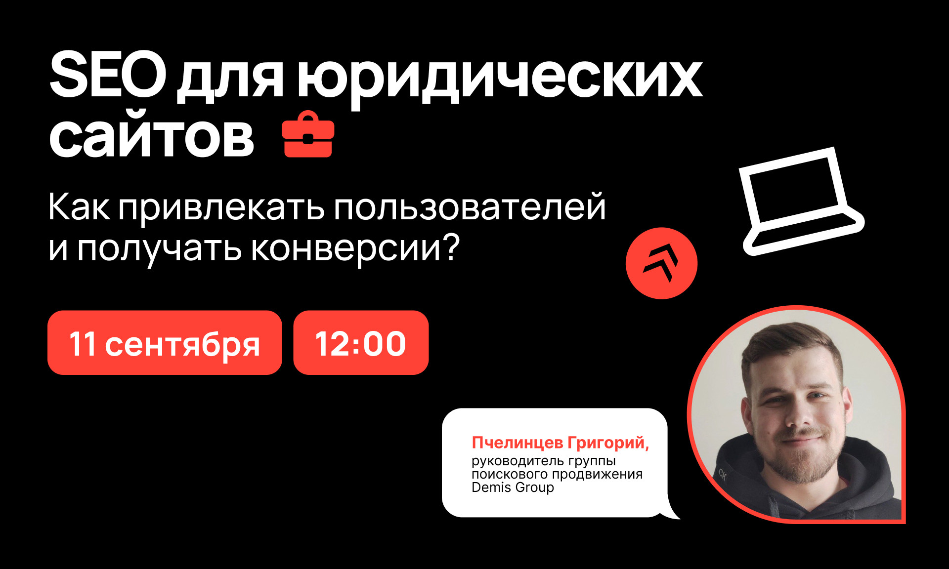 Когда: 4 сентября, 12:00 (Мск) Большинство компаний сливают рекламный бюджет, даже не понимая, куда он уходит. На вебинаре Станислава Басина, аккаунт-менеджера Demis Group, который ежедневно видит рекламные проекты изнутри, вы услышите реальные кейсы — без теории и приукрашивания: Вместо сложных настроек — понятные инструменты управления и контроля. Участники узнают, как перестать «кормить» рекламу деньгами и начать получать прогнозируемый результат. Зарегистрироваться: https://pruffme.com/landing/demisgroup/kontext_otkroveno?utm_source=demis&utm_medium=spark Когда: 9 сентября, 12:00 (Мск) Поиск Яндекса больше не ищет сайты! Сегодня бизнесу недостаточно просто оптимизировать сайт под ключевые запросы. Поисковые системы оценивают компанию по сотням параметров, которые нужно учитывать в SEO-стратегии. На вебинаре мы разберём: Также мы разберём ряд кейсов и антикейсов, чтобы на реальных примерах посмотреть, как активизация работ с сайтом и учёт внешних факторов помогают бизнесу преодолевать кризисные периоды. Зарегистрироваться: https://pruffme.com/landing/demisgroup/search_engeines?utm_source=demis&utm_medium=spark Когда: 11 сентября, 12:00 (Мск) Юридические услуги востребованы круглый год. Это надёжная и прибыльная ниша, но рынок перенасыщен: в России на 1 600 человек приходится одна юридическая организация. В Москве конкуренция ещё выше — одна компания на 750 жителей. Как в таких условиях привлекать больше клиентов? Лучшее решение — продвижение сайта юридических услуг в интернете. На вебинаре обсудим: Спикер: Григорий Пчелинцев, руководитель группы поискового продвижения Demis Group. Зарегистрироваться: https://pruffme.com/landing/demisgroup/seo_legal?utm_source=demis&utm_medium=spark Когда: 23 сентября, 12:00 (Мск) Конец года — период, когда спрос растёт, конкуренция обостряется, а стоимость клика стремительно меняется. Чтобы не потерять клиентов в самый прибыльный сезон, важно заранее подготовить кампании и грамотно распределить бюджет. На вебинаре вы узнаете: Кому будет полезно: маркетологам, владельцам бизнеса, специалистам по рекламе, SMM- и digital-менеджерам. Зарегистрироваться: https://pruffme.com/landing/demisgroup/kontekstnaya_reklama_1?utm_source=demis&utm_medium=spark Когда: 25 сентября, 12:00 (Мск) Запустили рекламу, а заявок мало? Лиды стоят в 2–3 раза дороже, чем планировали? Бюджет уходит, а результата нет? На вебинаре разберём реальные кейсы и покажем, где именно «утекают» деньги и что с этим делать: В результате вы уйдёте с чётким чек-листом, как оптимизировать кампании, снизить стоимость клика и увеличить количество заявок уже в этом месяце. Зарегистрироваться: https://pruffme.com/landing/demisgroup/kontekstnaya_reklama_2?utm_source=demis&utm_medium=spark