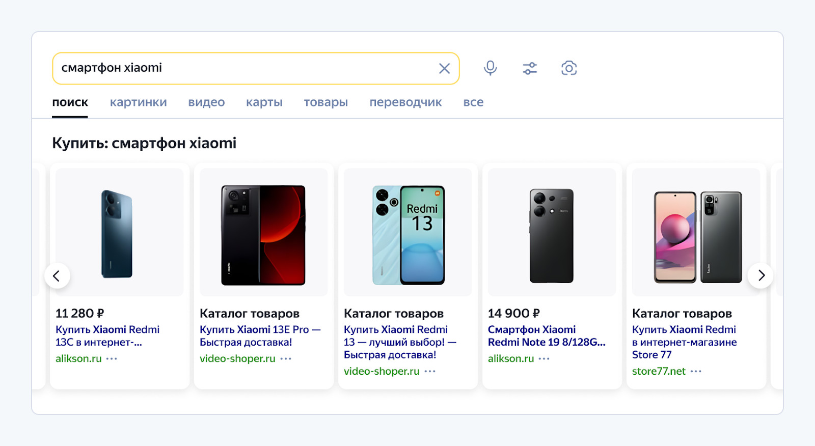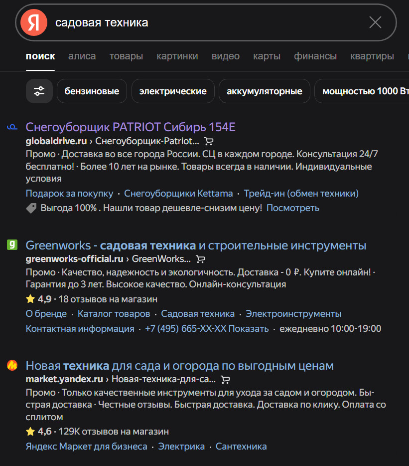 Пример: объявление на поиске по запросу «купить смартфон» с уникальным предложением или акцией.