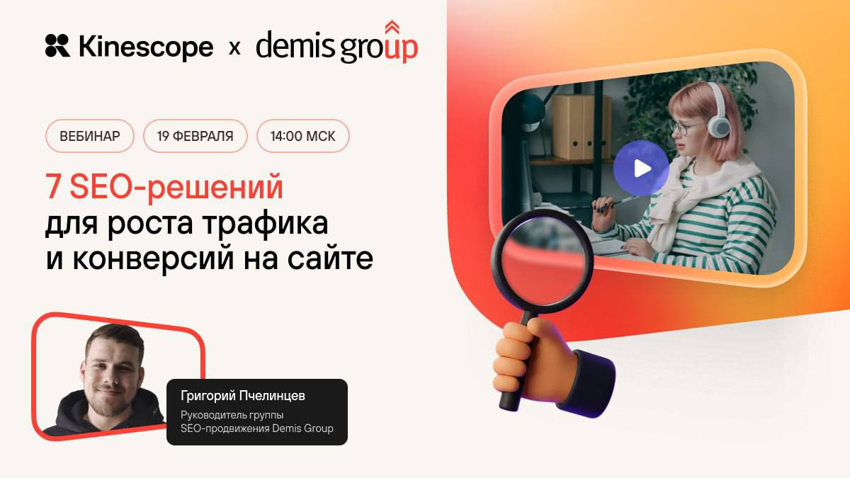 19 февраля в 14:00 МСК Kinescope совместно с Demis Group покажут 7 SEO-решений, которые работают в 2026 году.