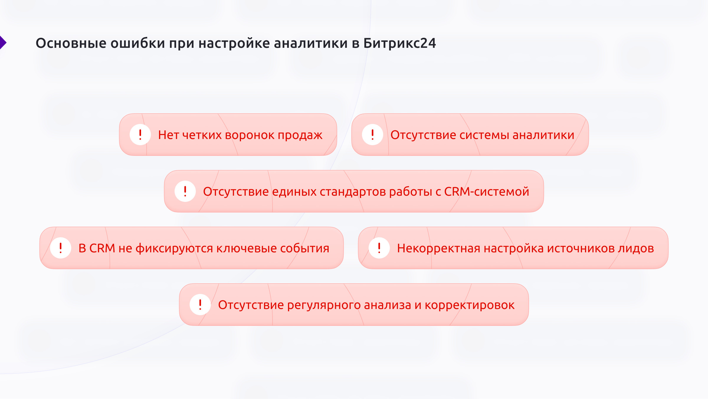 В этом разделе статьи мы разберем самые распространенные ошибки при настройке аналитики в Битрикс24 и расскажем, как их исправить, чтобы получать точные данные и управлять процессом продаж на основе цифр.