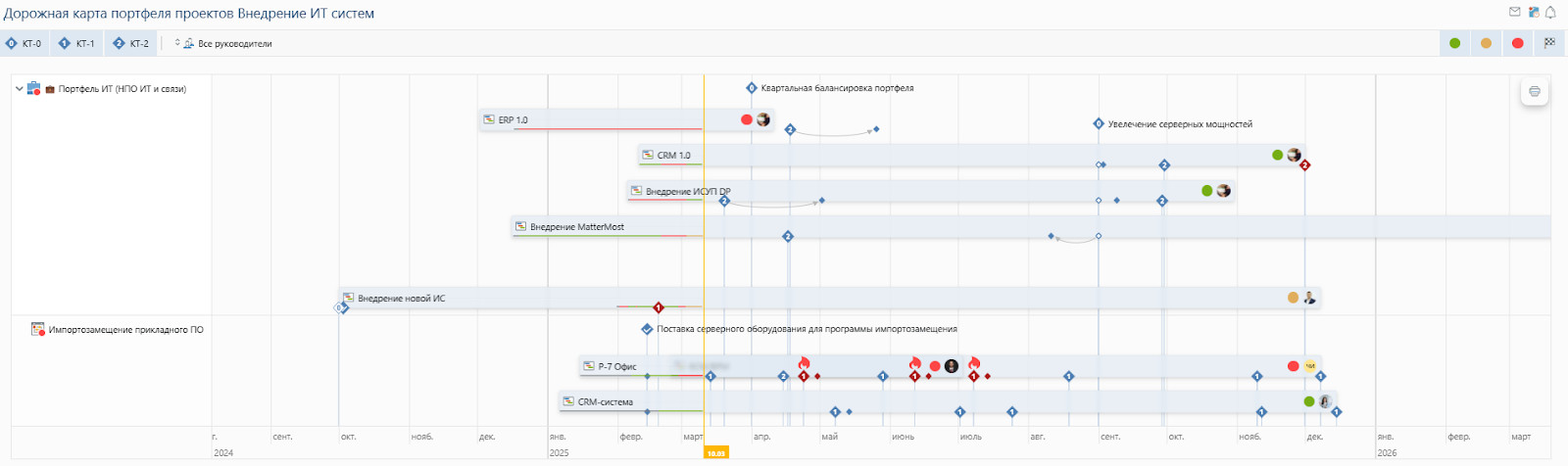 ● управление портфелями и программами с помощью контрольных точек и дорожной карты;