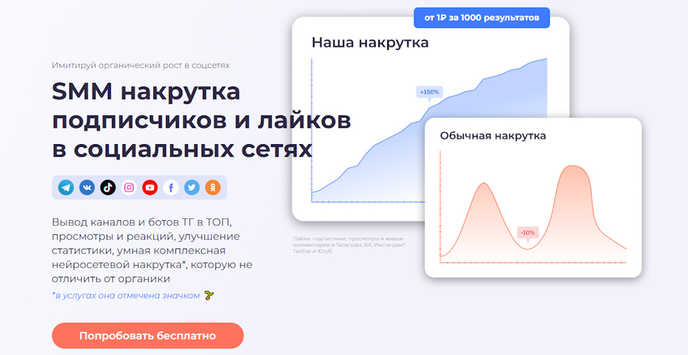 точечные услуги (подписчики, просмотры на 1 пост), так и комплексную накрутку,