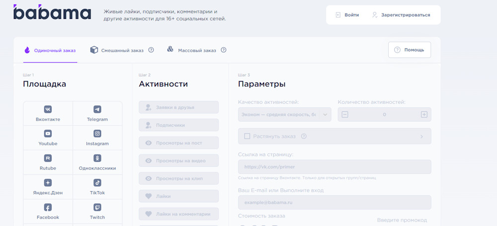 SSL. Чем еще полезен: Преимущества: Недостатки: 4. Babama Сервис накрутки в
