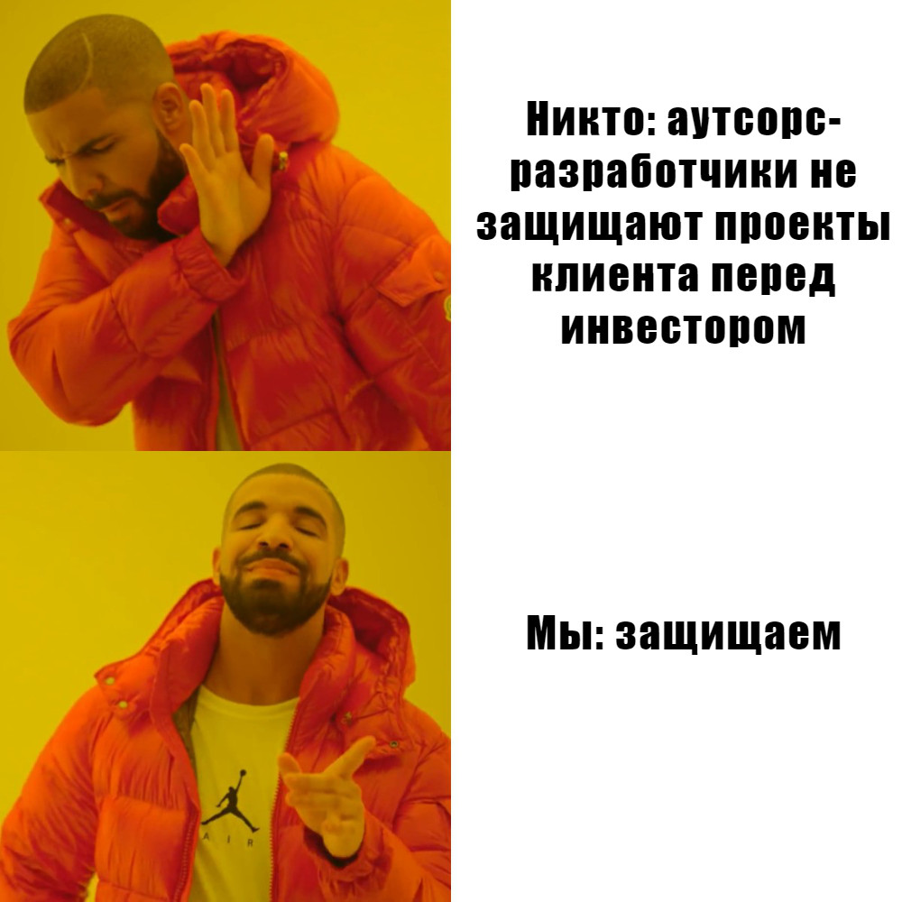 Никто: аутсорс-разработчики не защищают клиентские проекты перед инвестором. Мы: защищаем