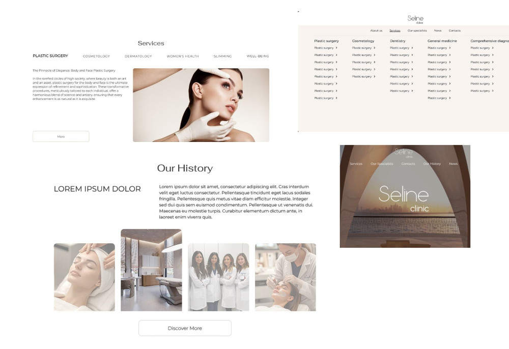 В статье буду приводить примеры сайтов, которые мне понравились, и использовать свежий кейс DNA Team — сайт для филиала косметологической клиники Seline в ОАЭ.