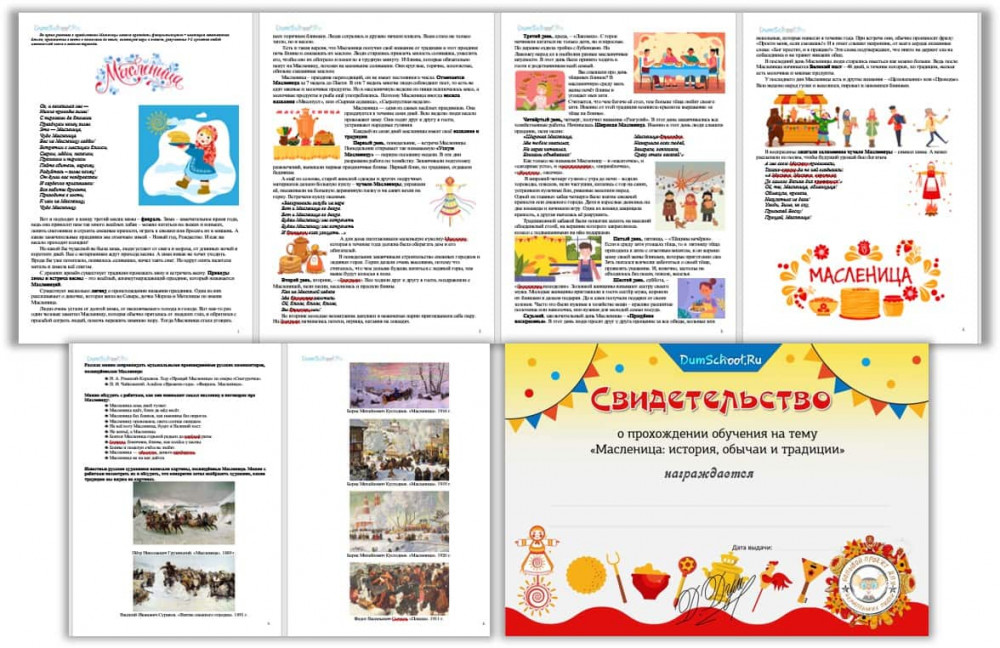 — Свидетельство о прохождении обучения на тему «Масленица: история, обычаи и традиции», которое получит каждый участник мероприятия.