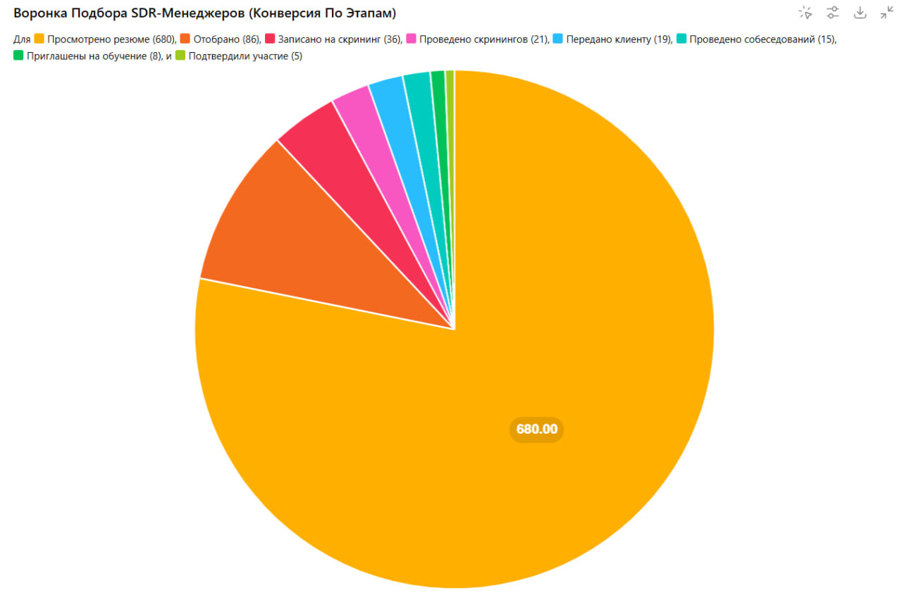 За 8 дней мы обработали 680 откликов, провели 15 собеседований и отобрали 5 человек, которых вывели на обучение на позицию SDR. Расскажу, как проходил этот отбор и что помогло быстро найти подходящих кандидатов.