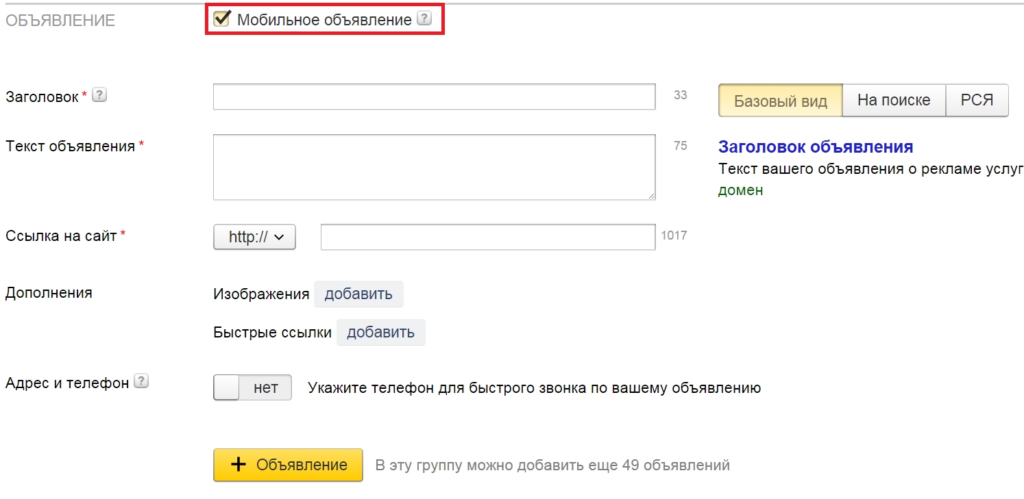 Создайте мобильные объявления