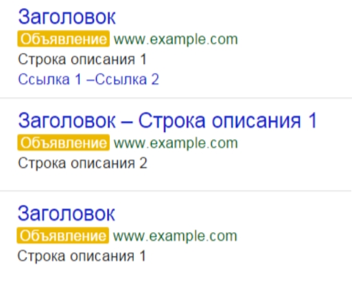 В Google AdWords действует динамическая оптимизация мобильных объявлений: система автоматически выбирает, какой компонент объявления убрать, а какой оставить. Например, AdWords может скрыть вторую строку описания и при показе отдать предпочтение быстрым ссылкам. В Справке Google приводит три примера внешнего вида объявлений на смартфонах: