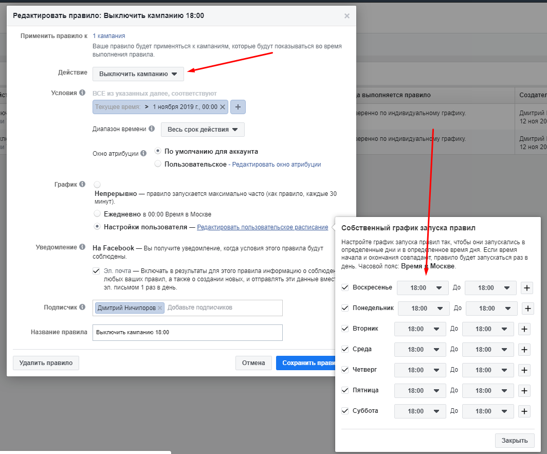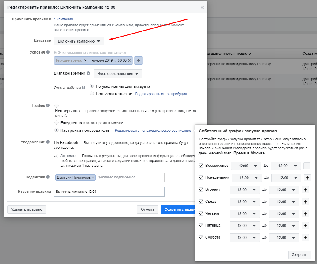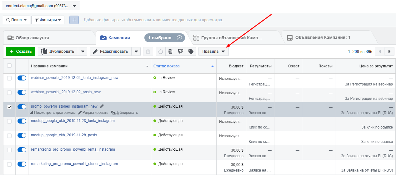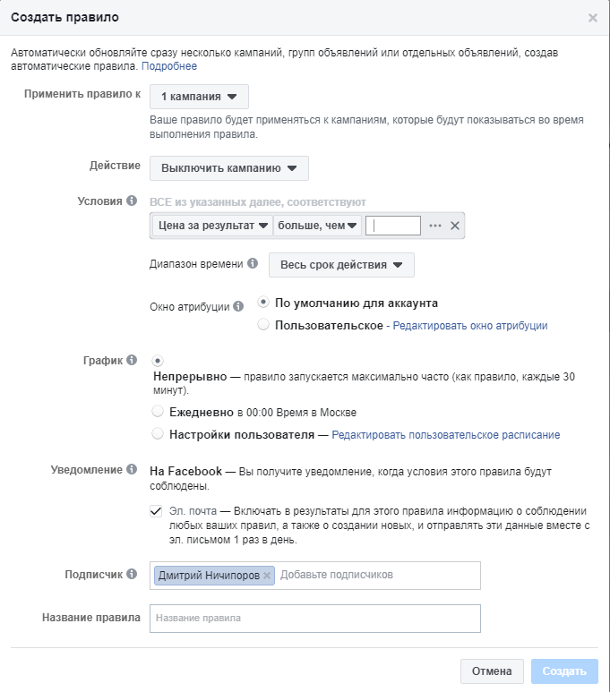 Правила Facebook Ads позволяют настроить условия, которые будут автоматически применяться к рекламным кампаниям, группам объявлений и объявлениям. Это позволит сэкономить время на рутинных операциях и упростить работу с большим количеством рекламных кампаний.